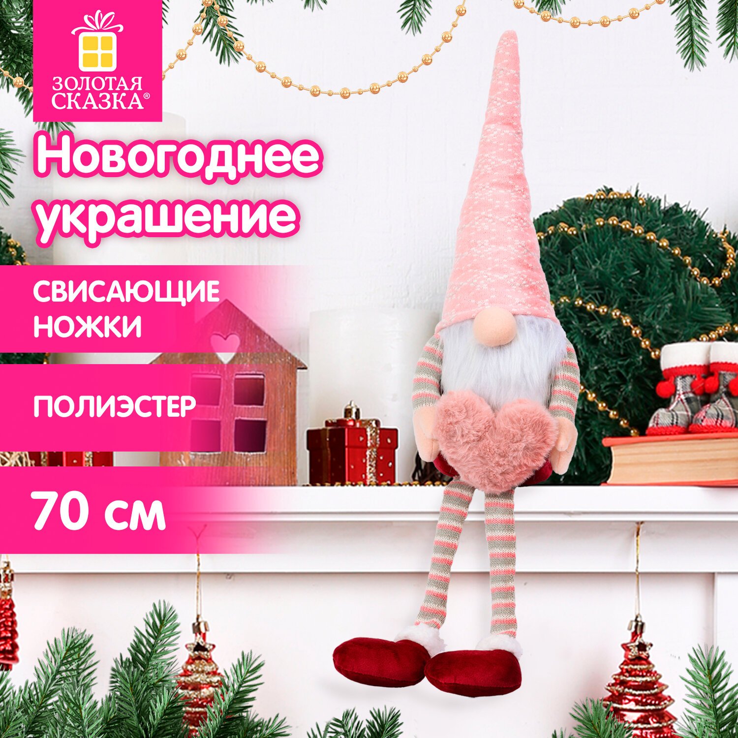 Украшение новогоднее интерьерное 70 см "Гном с сердечком", полиэстер, ЗОЛОТАЯ СКАЗКА, 592524