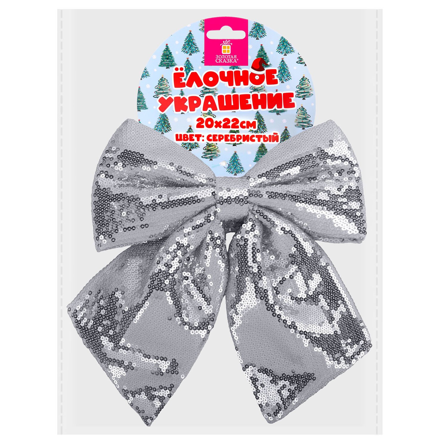 Украшение ёлочное 20х22см, "Бант с пайетками", полиэстер, серебро, ЗОЛОТАЯ СКАЗКА, 592481