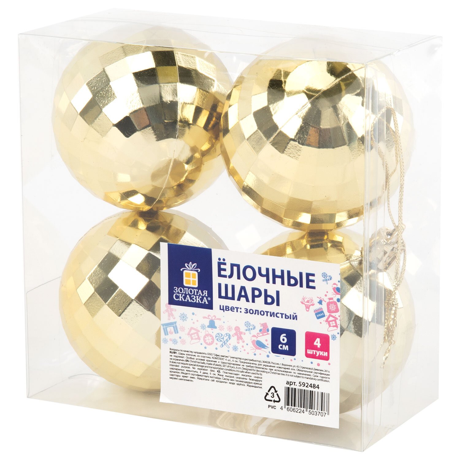 Украшение ёлочное 4 шт, 6 см, "Диско-шар", пластик, золотистый, ЗОЛОТАЯ СКАЗКА, 592484