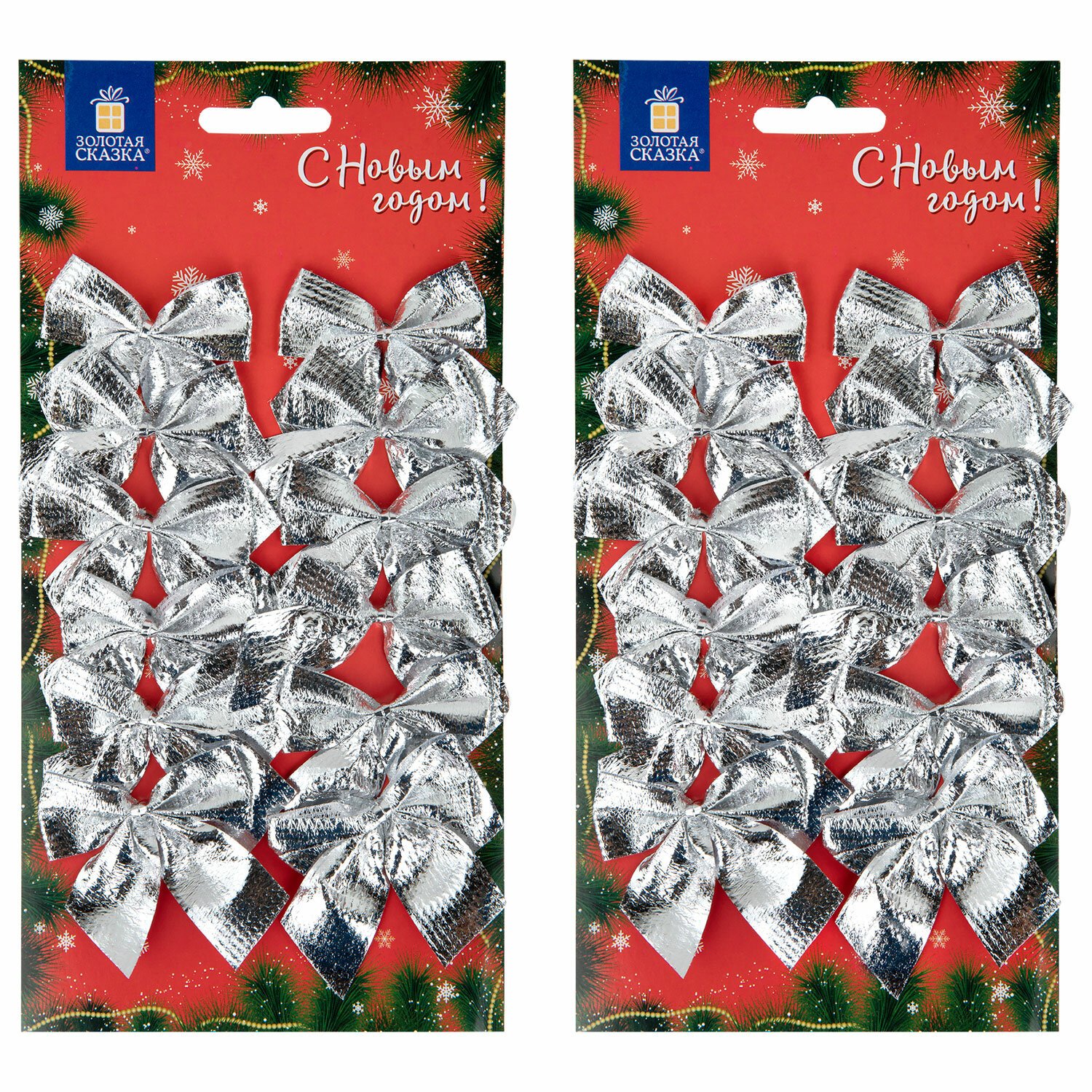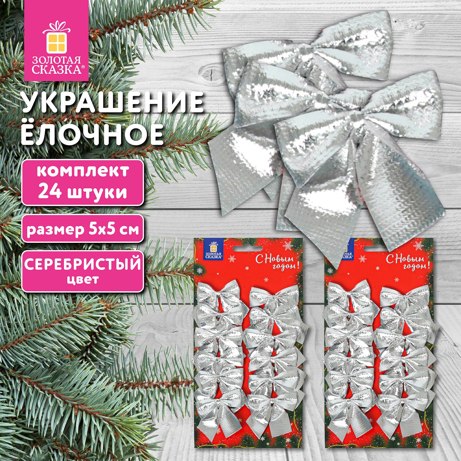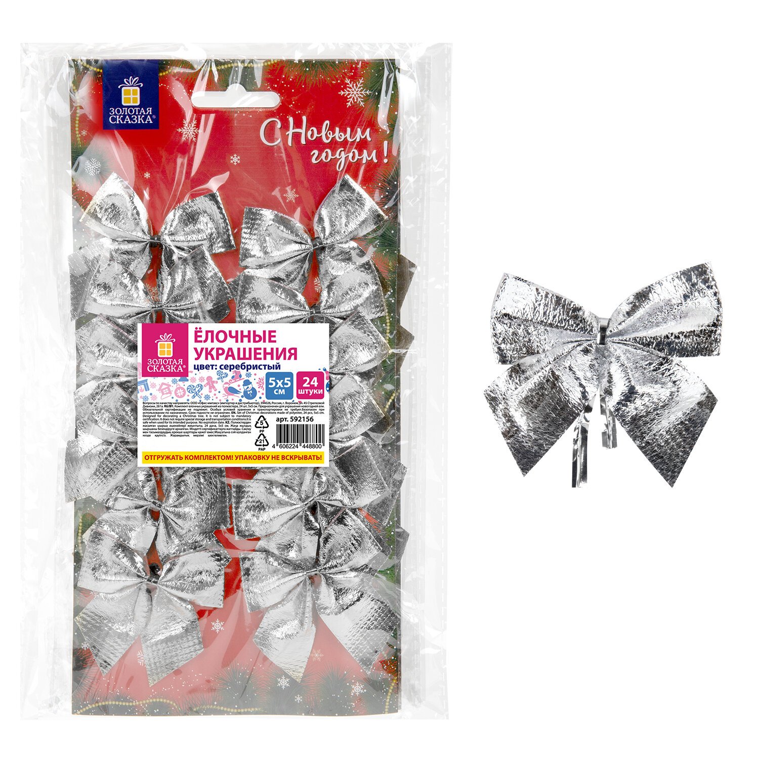 Украшение ёлочное "Бантики", КОМПЛЕКТ 24 шт., 5х5 см, серебристые, ЗОЛОТАЯ СКАЗКА, 592156