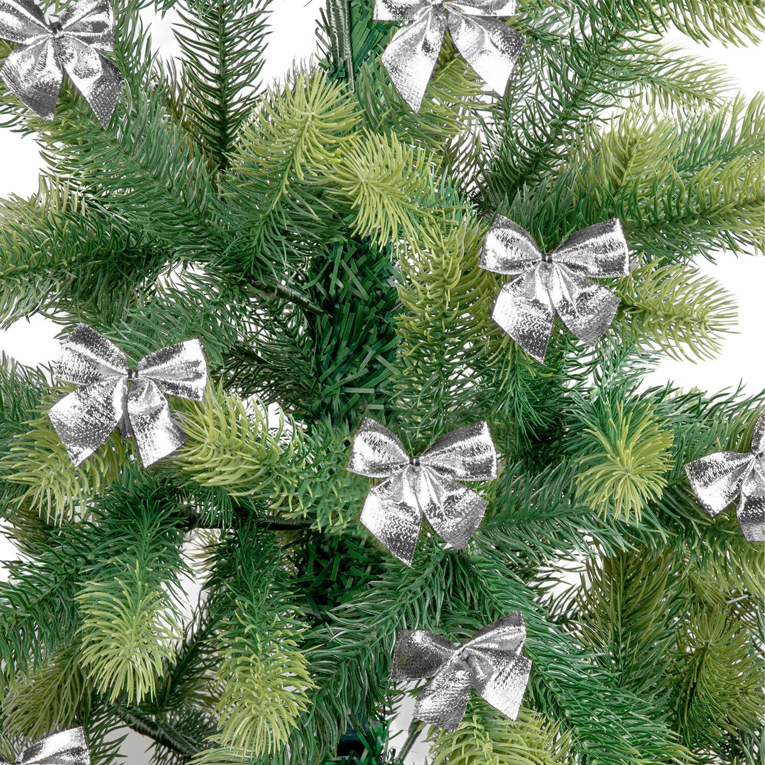 Серебристые бантики создают элегантную и гармоничную композицию, которая будет великолепно смотреться на вашей елке. Разместите их по всей высоте ели, чтобы создать праздничный ансамбль, который будет радовать вас и ваших гостей на протяжении всего зимнего сезона.