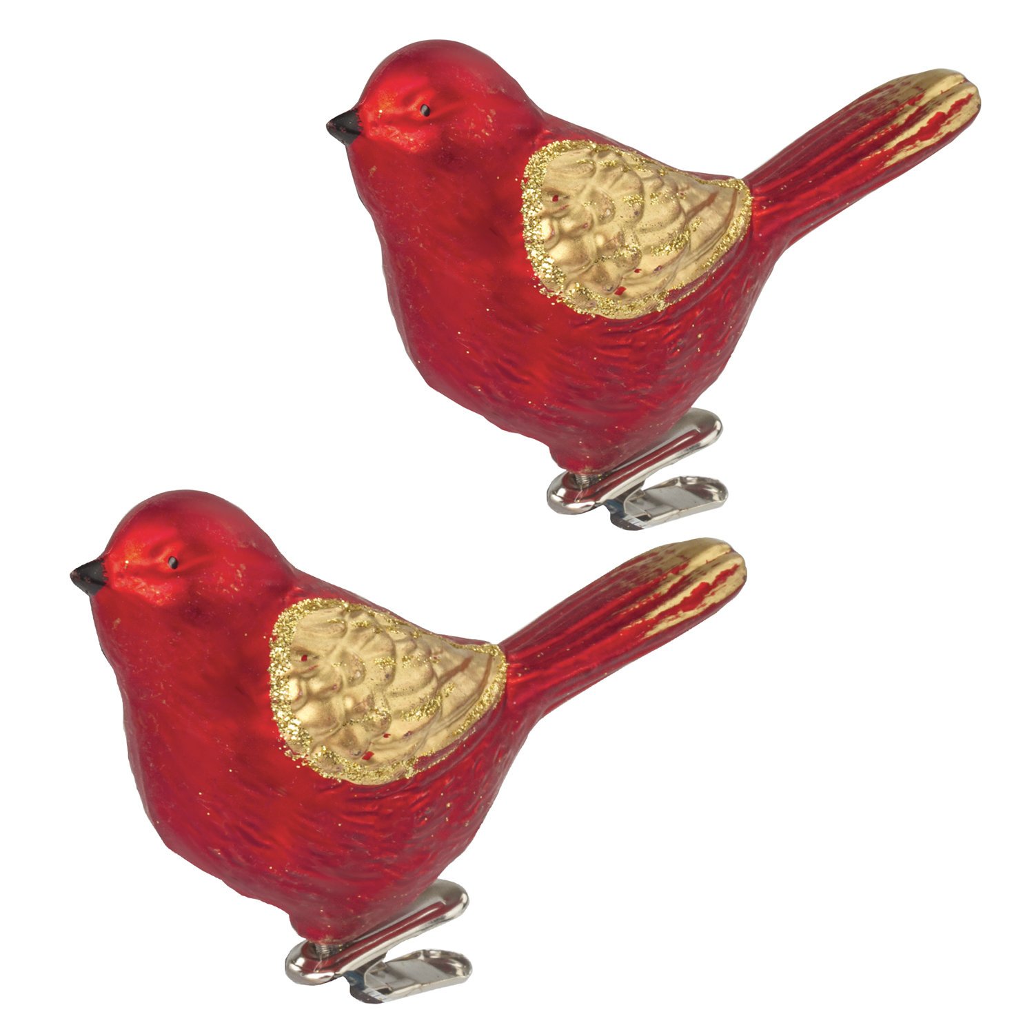 Украшение ёлочное "Птички" 2 шт., 11 см, пластик, цвет: красный/золотистый, ЗОЛОТАЯ СКАЗКА, 590893