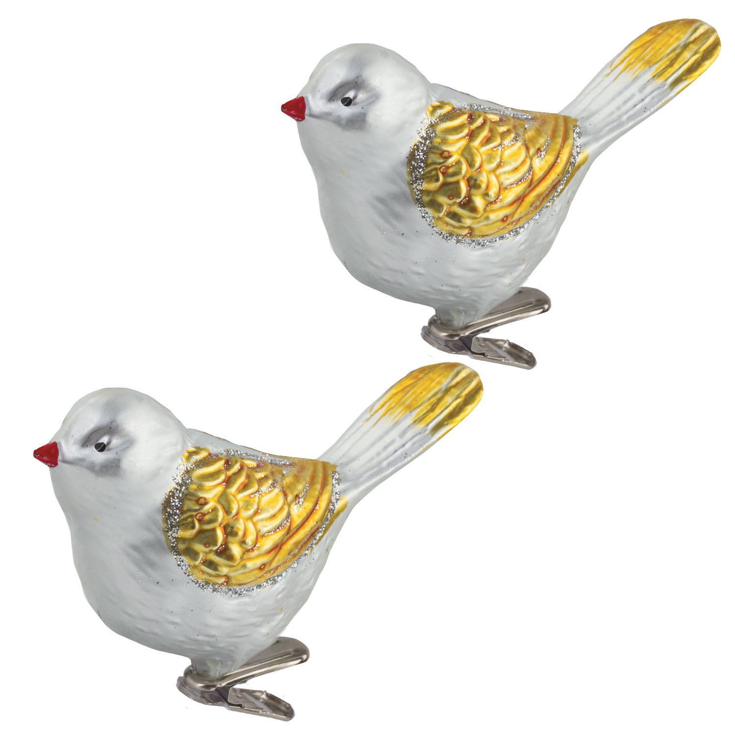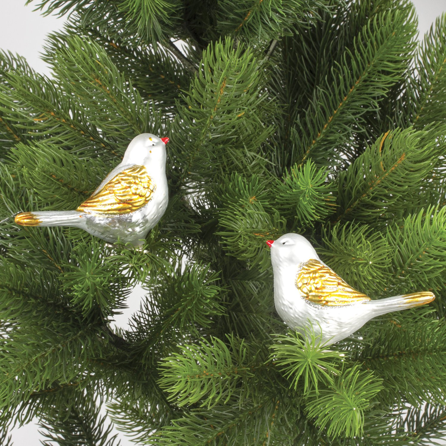 Украшения выполнены в виде птичек и крепятся на новогоднюю ель посредством удобной клипсы.