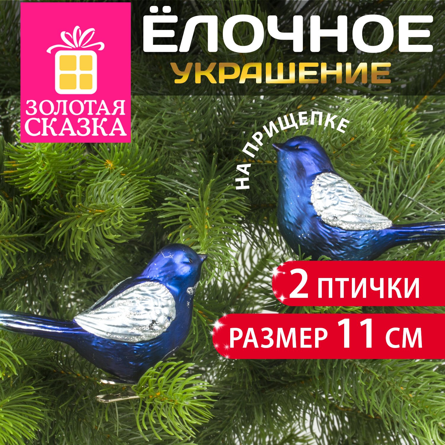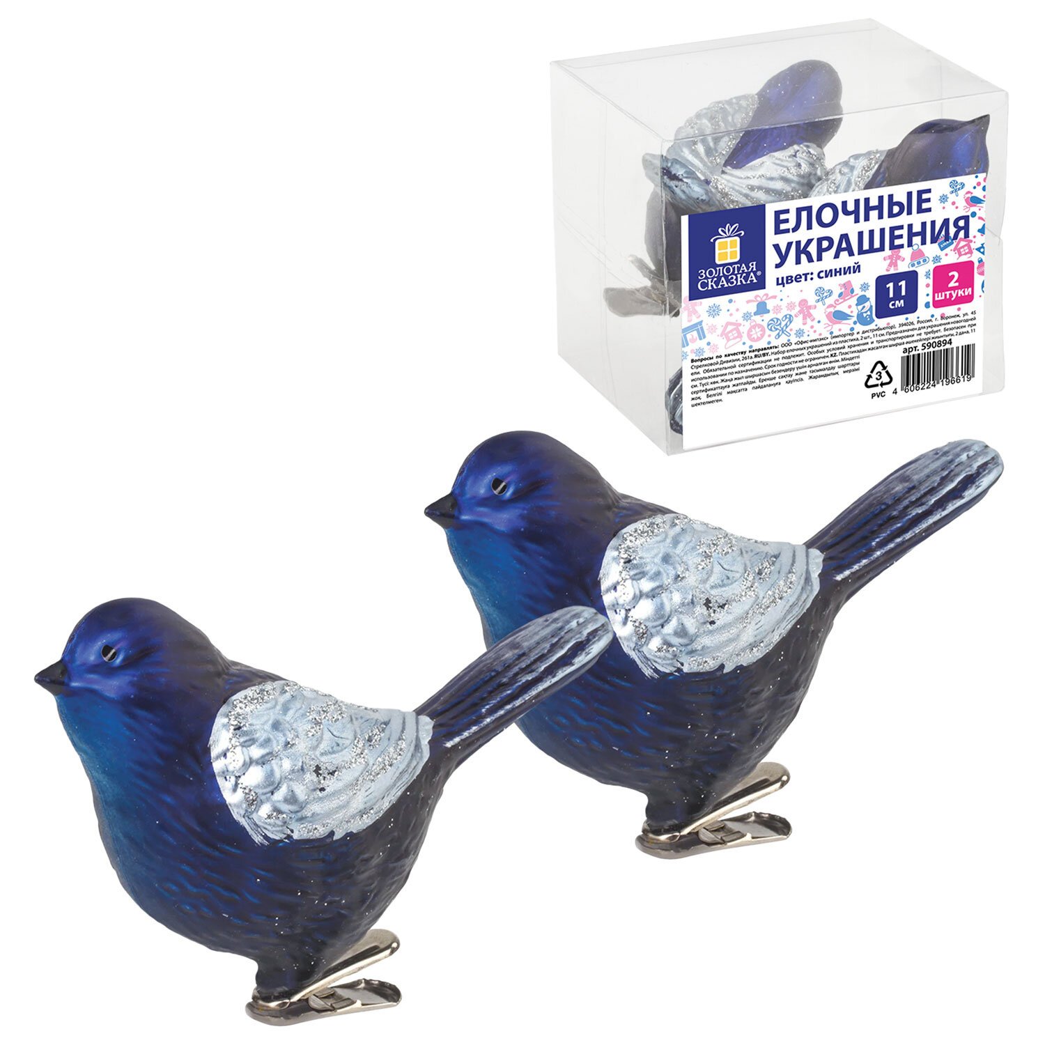 Украшение ёлочное "Птички" 2 шт., 11 см, пластик, цвет: синий/серебристый, ЗОЛОТАЯ СКАЗКА, 590894