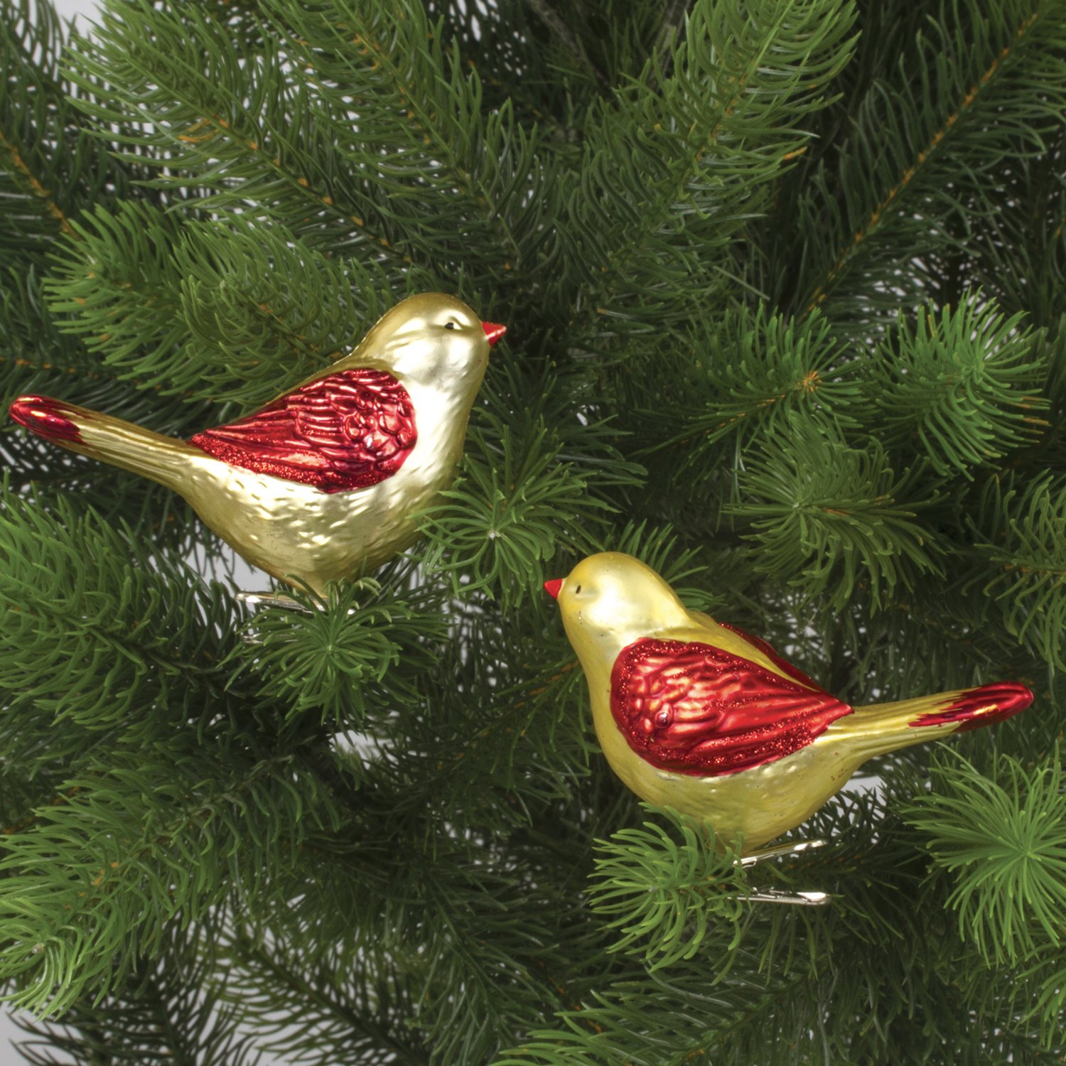 Украшения выполнены в виде птичек и крепятся на новогоднюю ель посредством удобной клипсы.