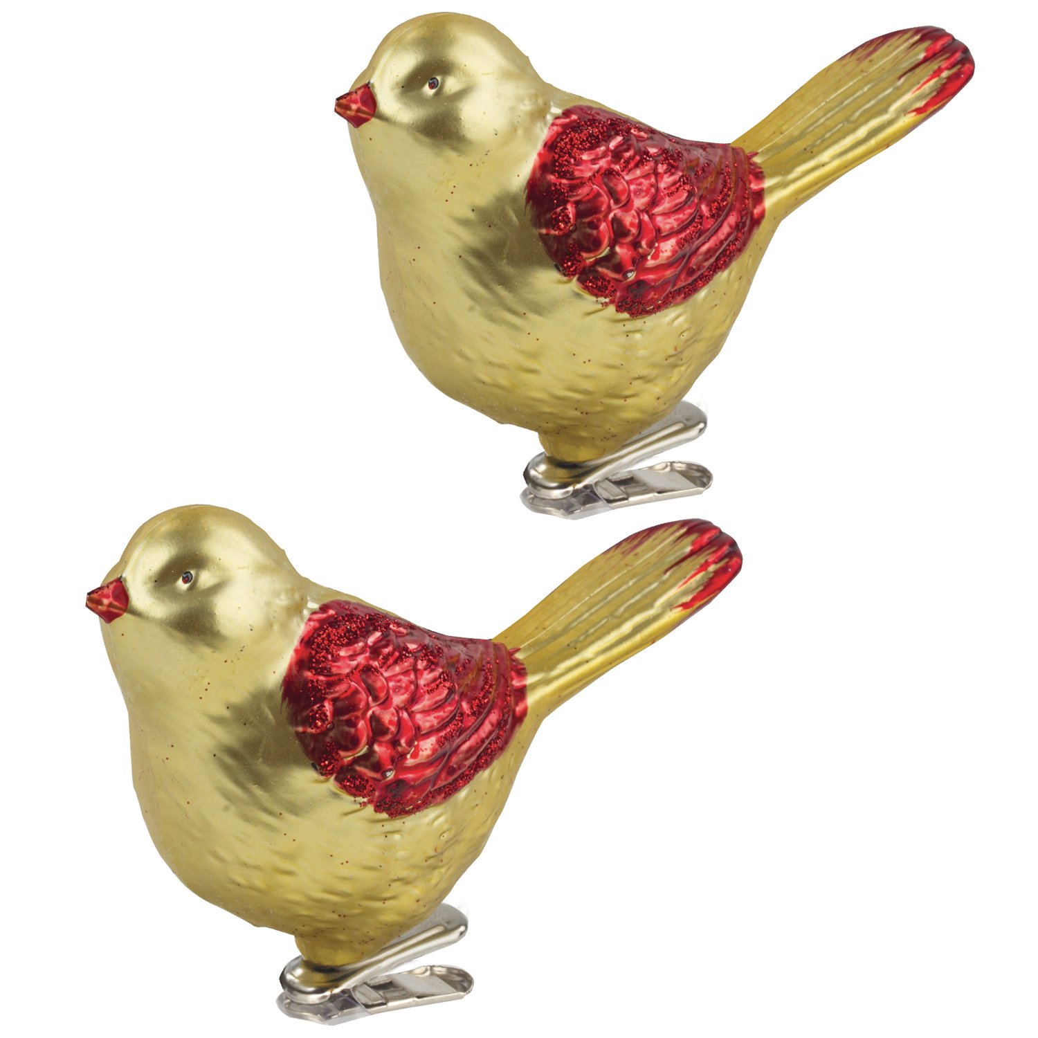 Украшение ёлочное "Птички" 2 шт., 11 см, пластик, цвет: золотистый/красный, ЗОЛОТАЯ СКАЗКА, 590896