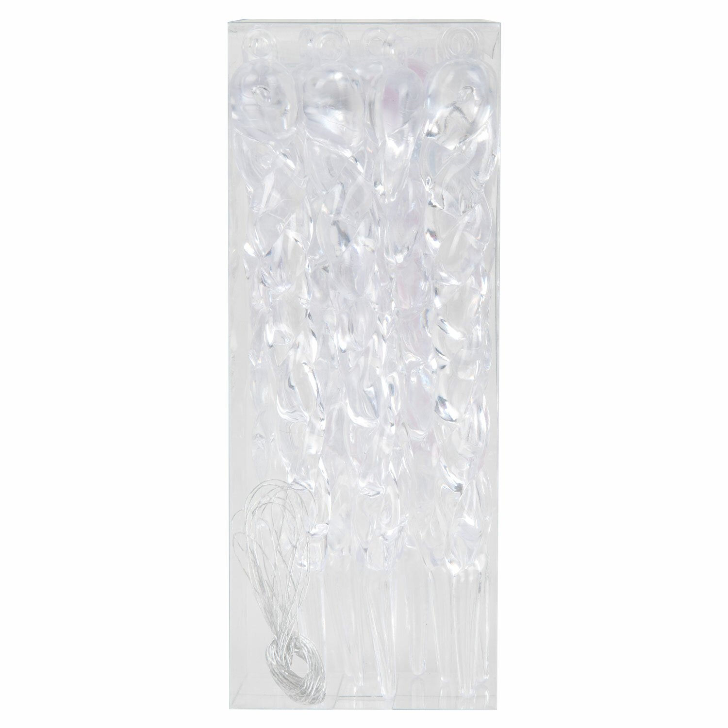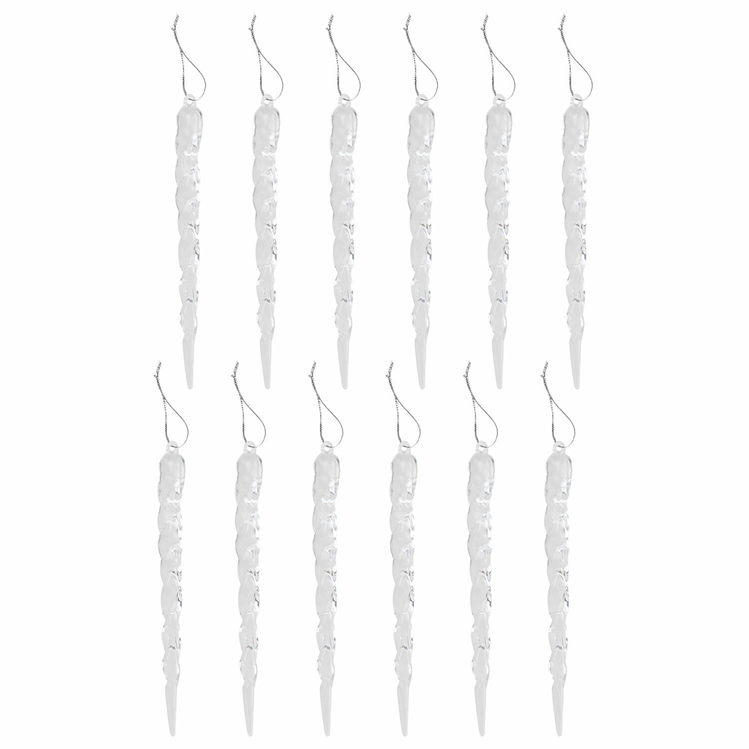 В наборе 12 сосулек. Размер украшений - 11,5 см. Материал - акрил. Упакованы в прозрачную коробку из ПВХ.