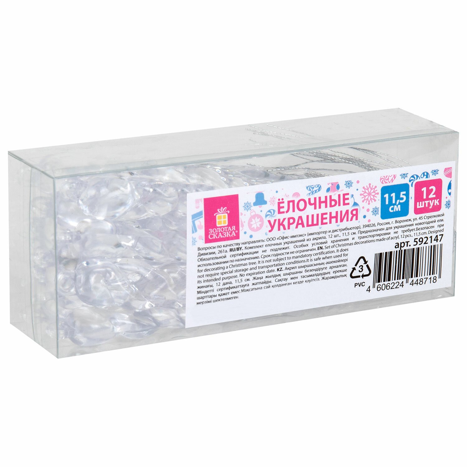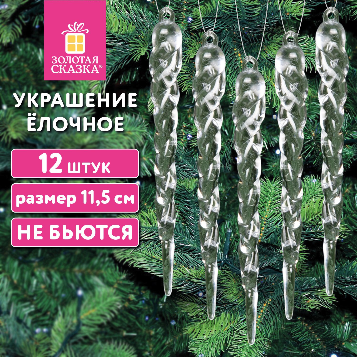 Украшение ёлочное "Сосульки акриловые", 12 шт., 11,5 см, ПВХ-бокс, ЗОЛОТАЯ СКАЗКА, 592147