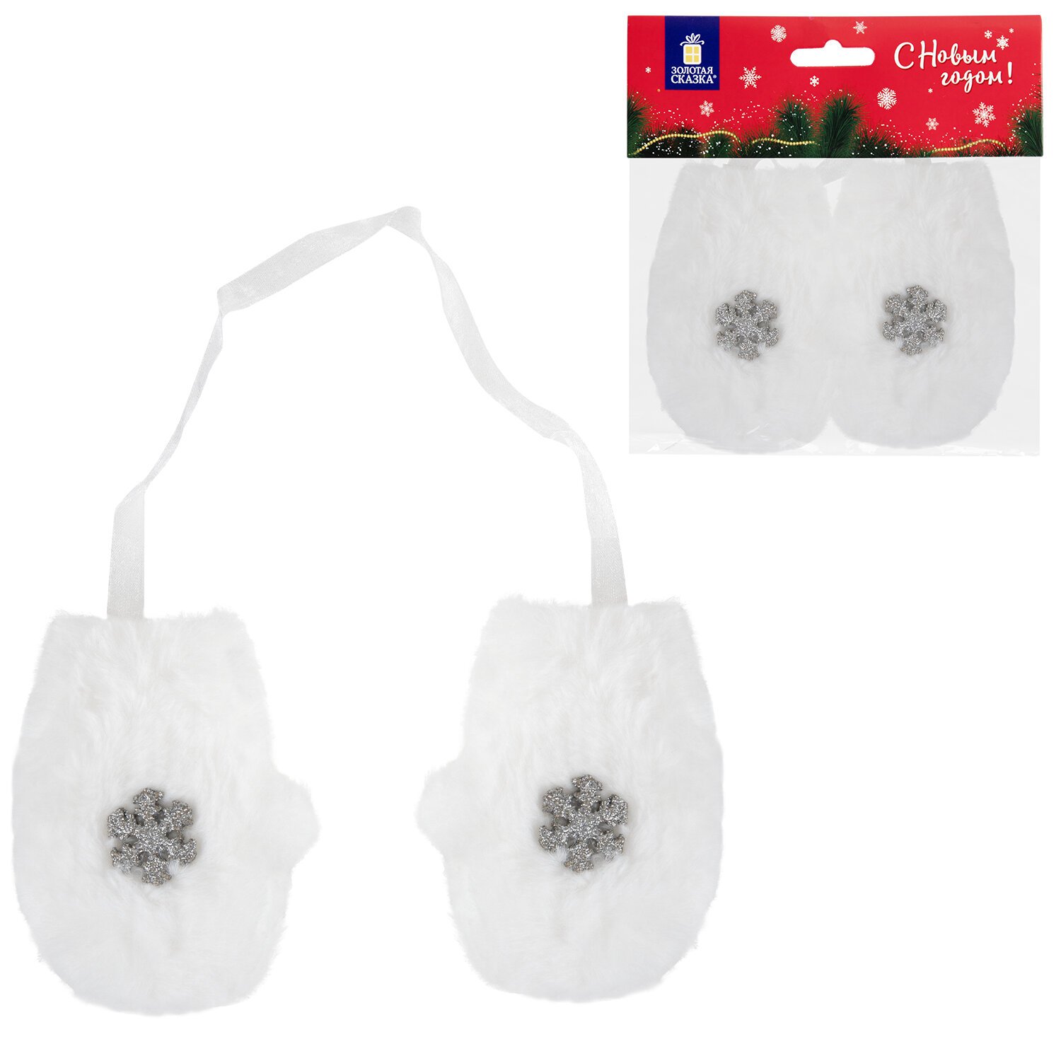 В наборе 1 пара варежек. Размер украшений – 10 см. Материал – полиэстер. Упакованы в пакет с европодвесом.