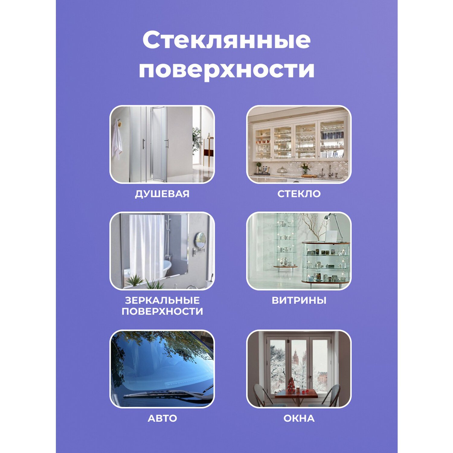 стеклянными и зеркальными поверхностями. Эффективно удаляет пыль, грязь, налет, следы от пальцев.