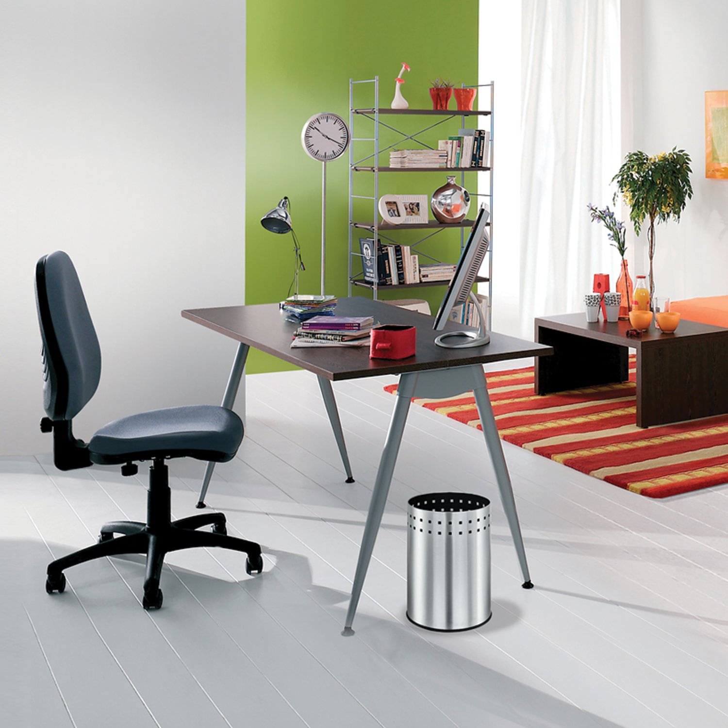 Объем – 12 л. Корзина изготовлена из высококачественной нержавеющей стали. Круглая форма корзины имеет диаметр верхней части и диаметр основания 25,5 см, высоту 35 см. Несгораемый перфорированный корпус. Рекомендуется использовать мешок размером 50х60 см и объемом 30 л.