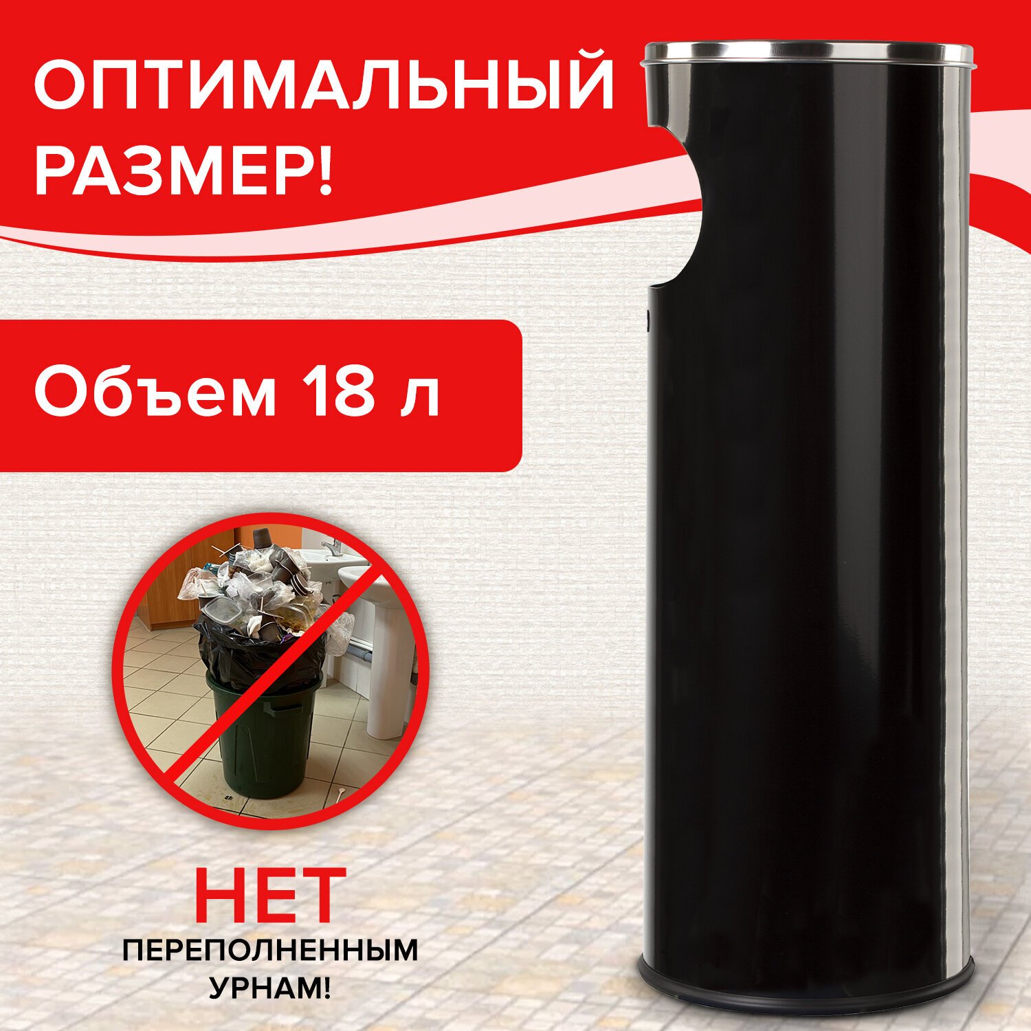 Урна с пепельницей 18 литров, 580х210 мм, нержавеющая сталь, черная, LAIMA PROFESSIONAL, 606298