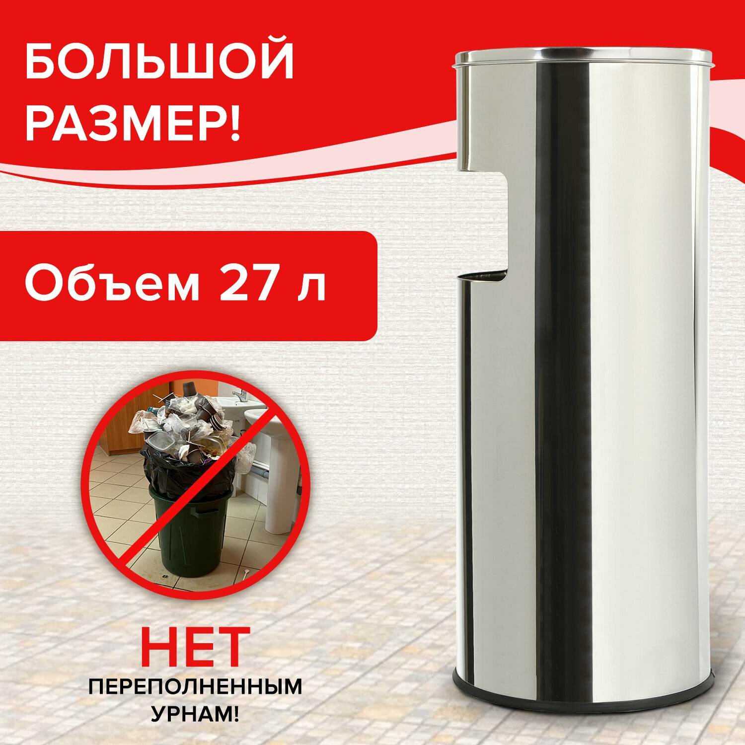 Урна с пепельницей 27 литров, 600х250 мм, нержавеющая сталь, зеркальная, LAIMA PROFESSIONAL, 606299