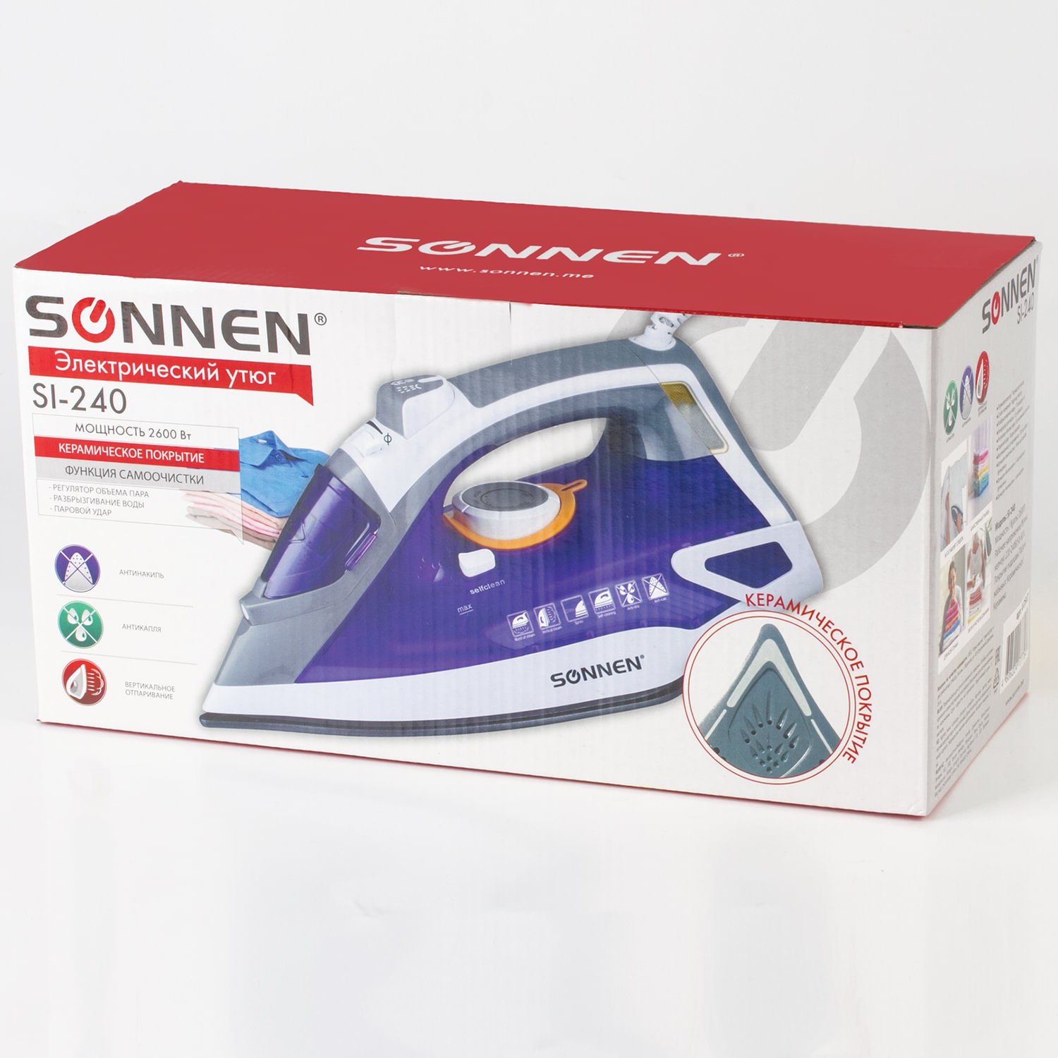 Утюг SONNEN SI-240, 2600 Вт, керамическое покрытие, антикапля, антинакипь, фиолетовый, 453507