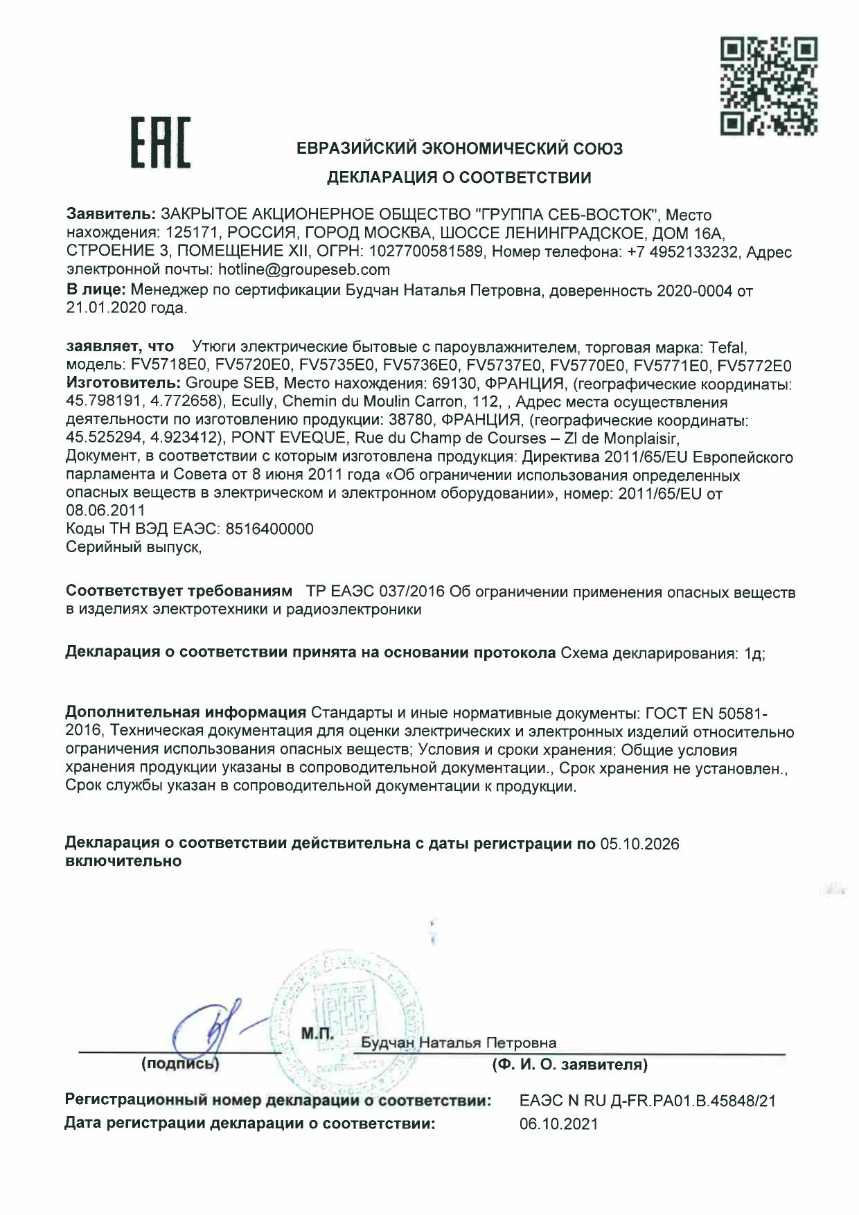 Утюг Tefal Easygliss 2 FV5736E0 мощностью 2500 Вт легко и непринужденно будет справляться в ваших руках с горами выстиранного белья.