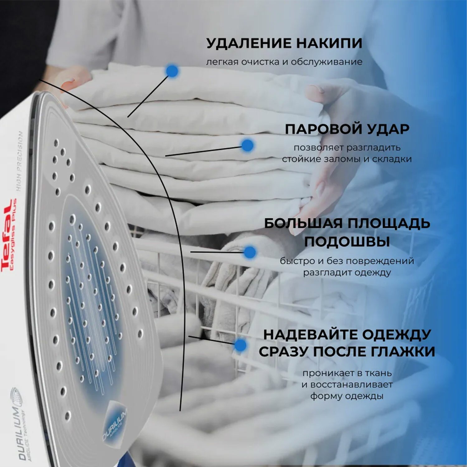 Утюг TEFAL Easygliss 2 FV5736E0, 2500 Вт, керамическое покрытие, самоочистка, антикапля, синий, 1830008076