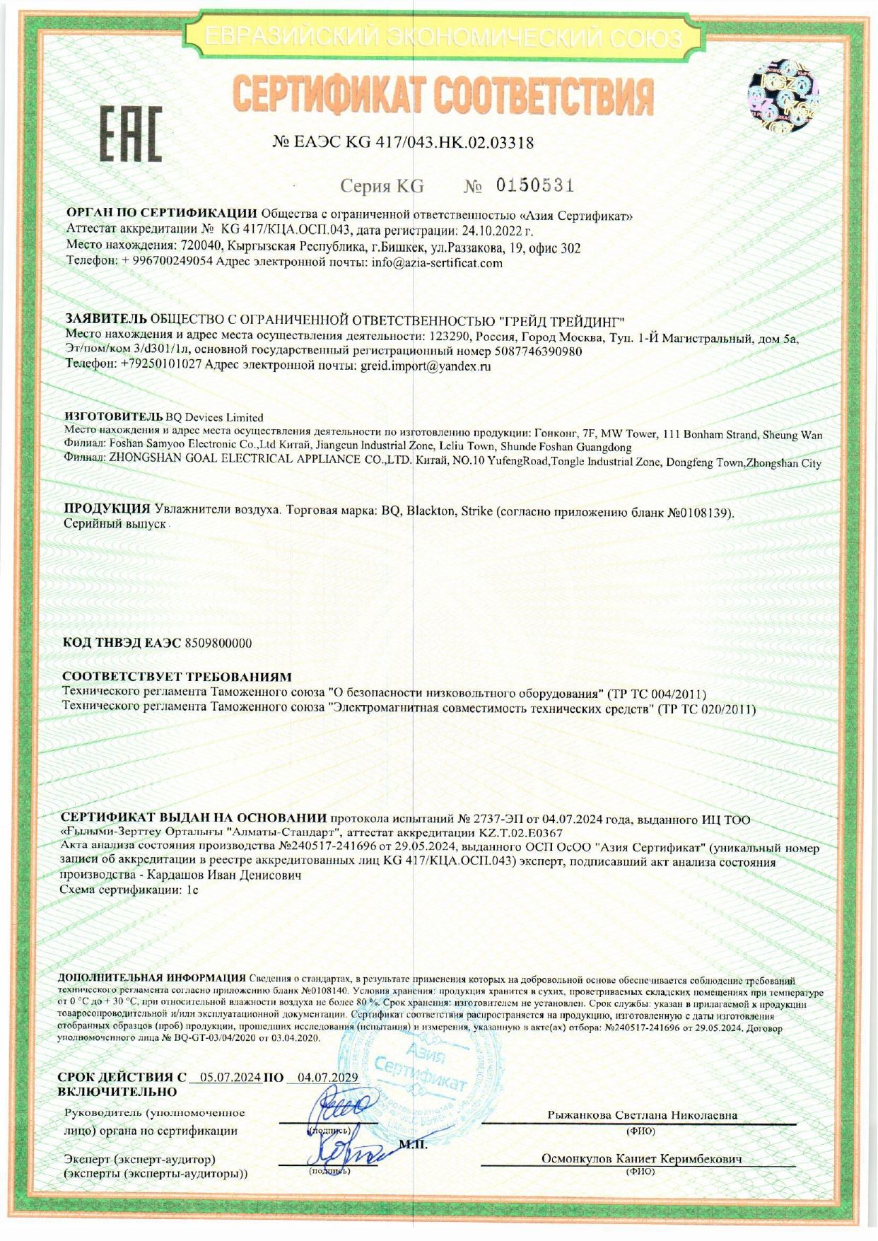 Увлажнитель воздуха BQ (БИ-КЬЮ) HDR2005, объем бака 4 л, 25 Вт, белый, 86197234