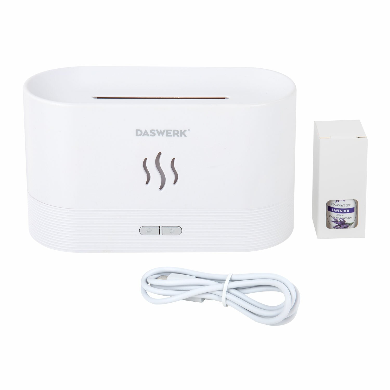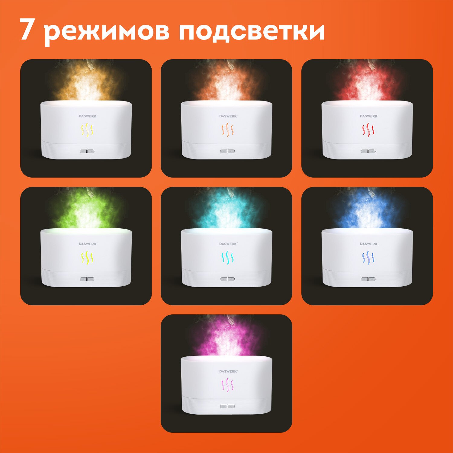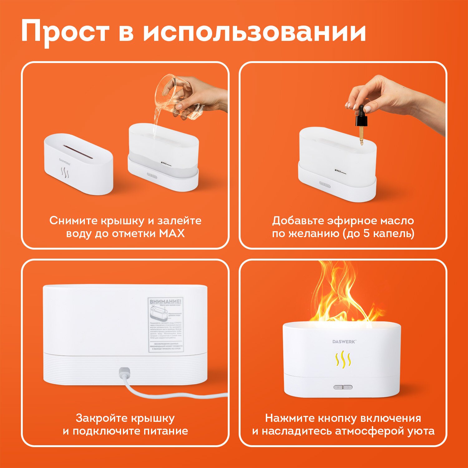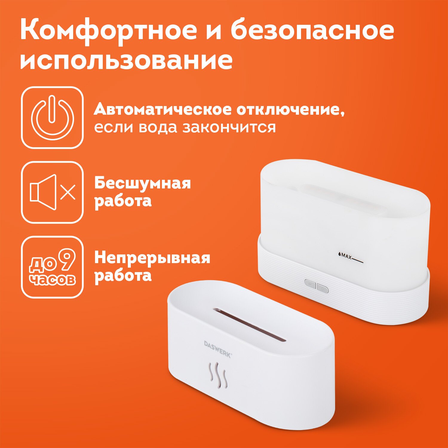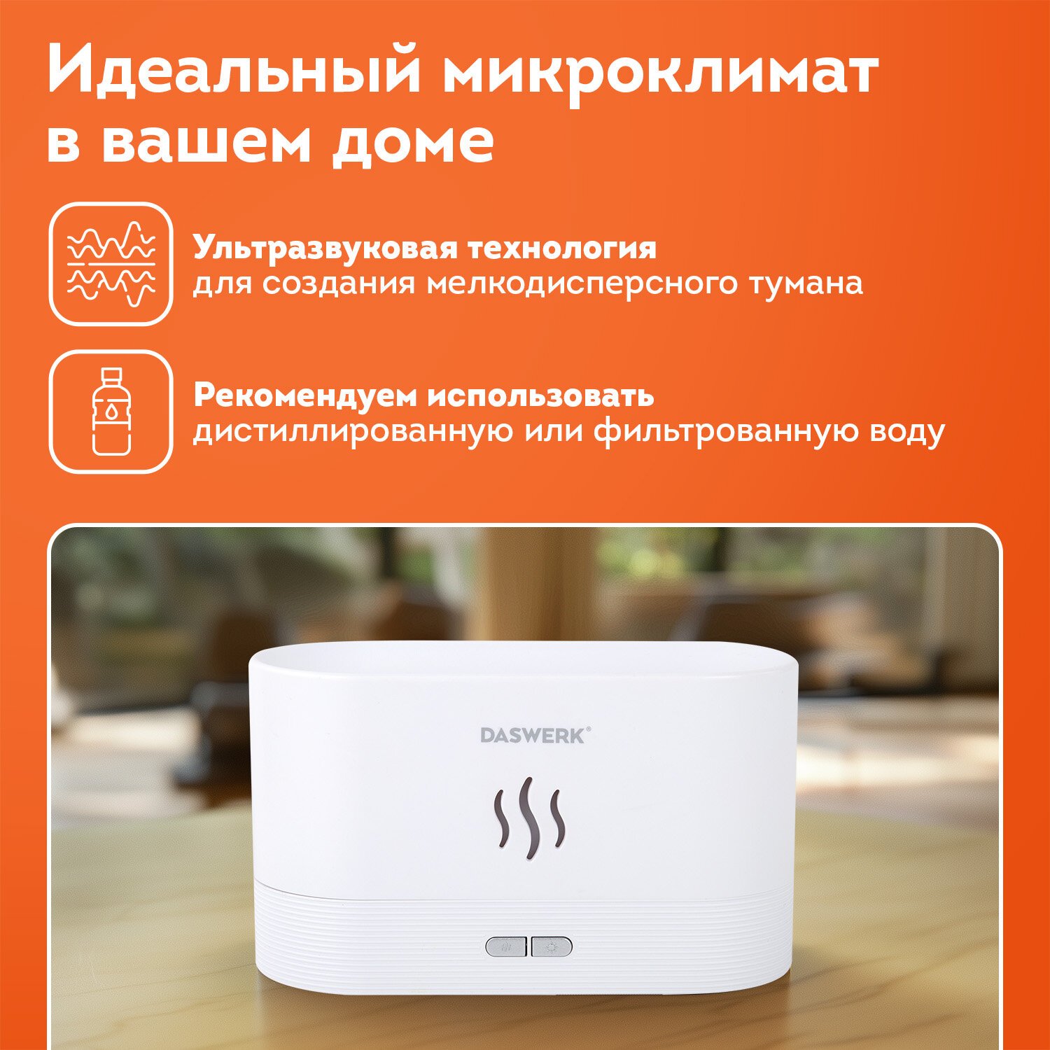 Увлажнитель воздуха "Камин", эффект пламени, 180 мл, Аромамасло в ПОДАРОК, белый, DASWERK, 456846