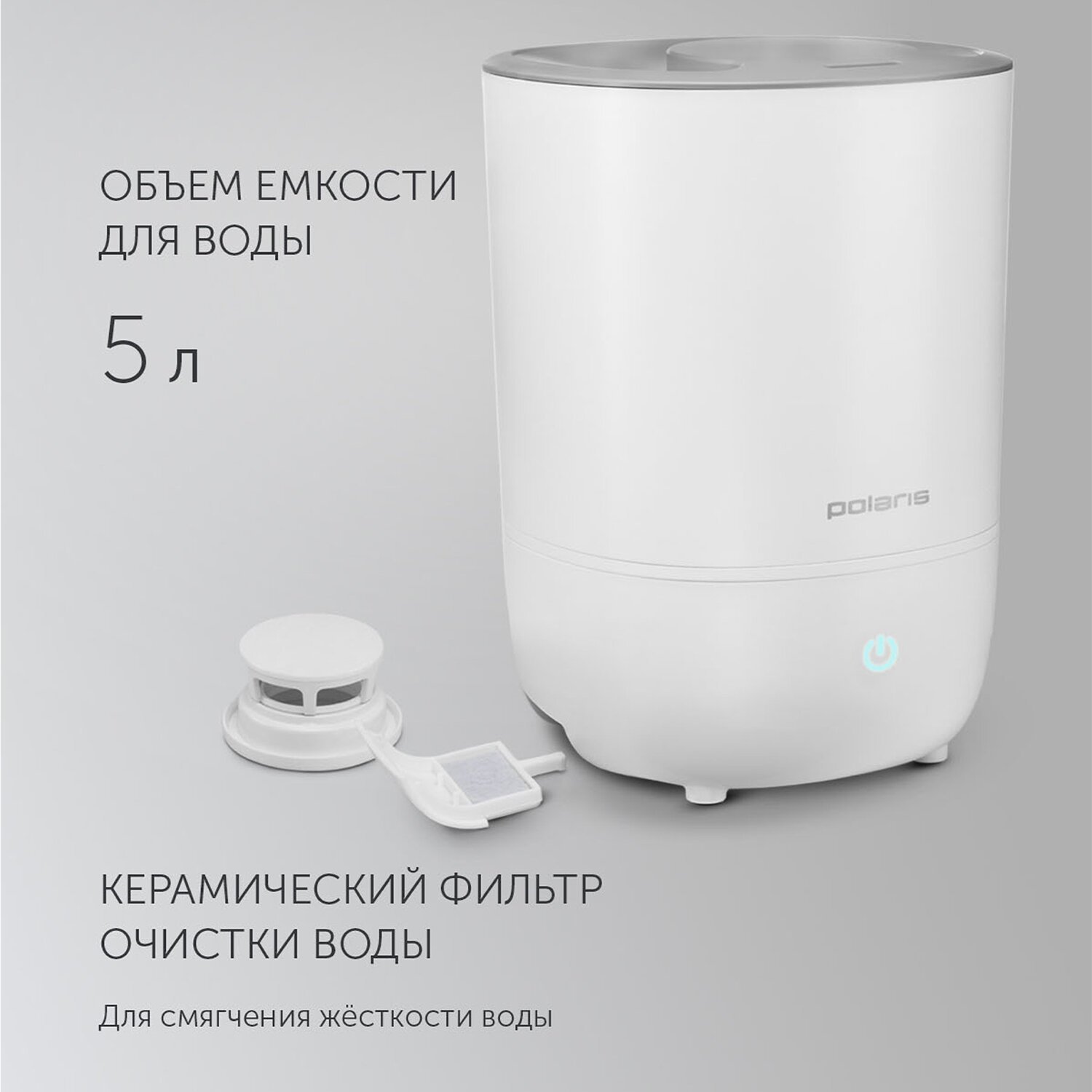 Увлажнитель воздуха POLARIS PUH 7240 TF, объем бака 5л, 30Вт, арома-контейнер, белый, 44669