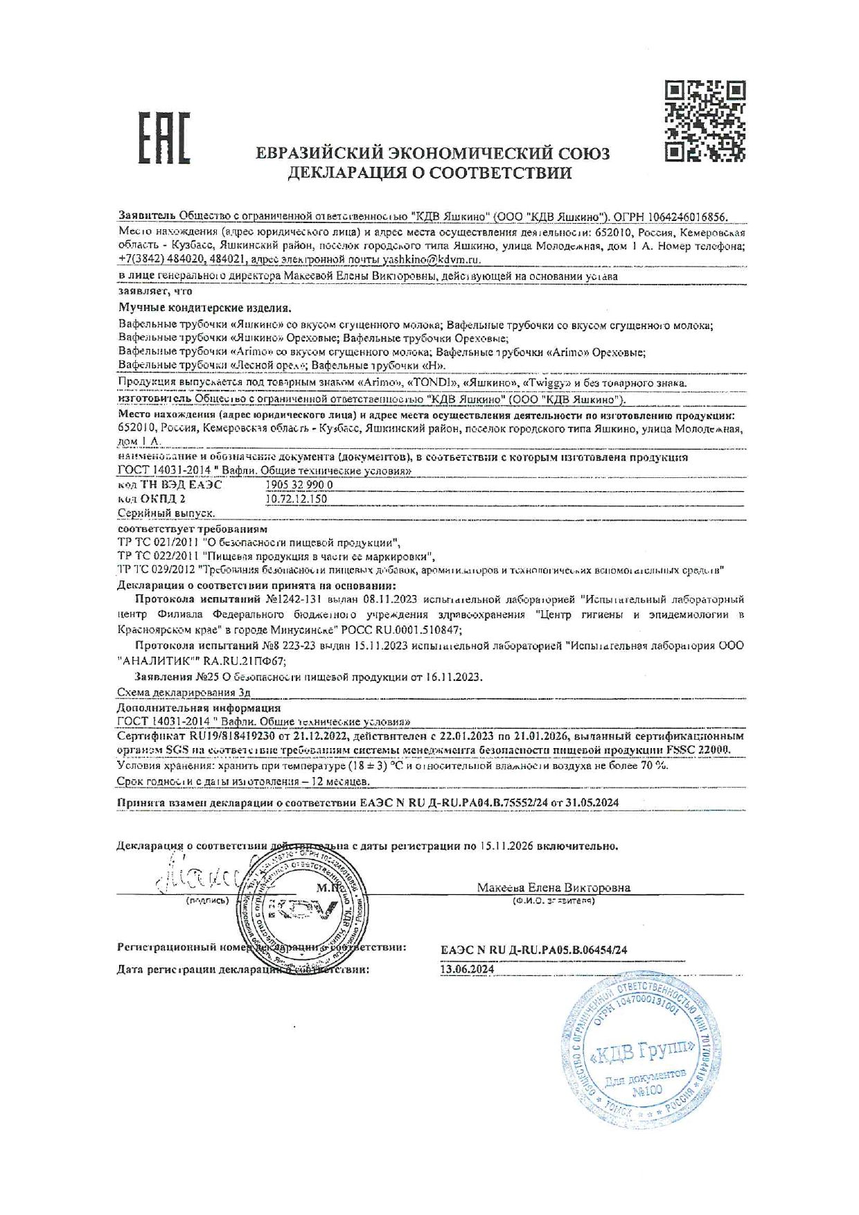 Вафли ЯШКИНО "Ореховые" - хрустящие вафельные трубочки с шоколадно-ореховой начинкой.