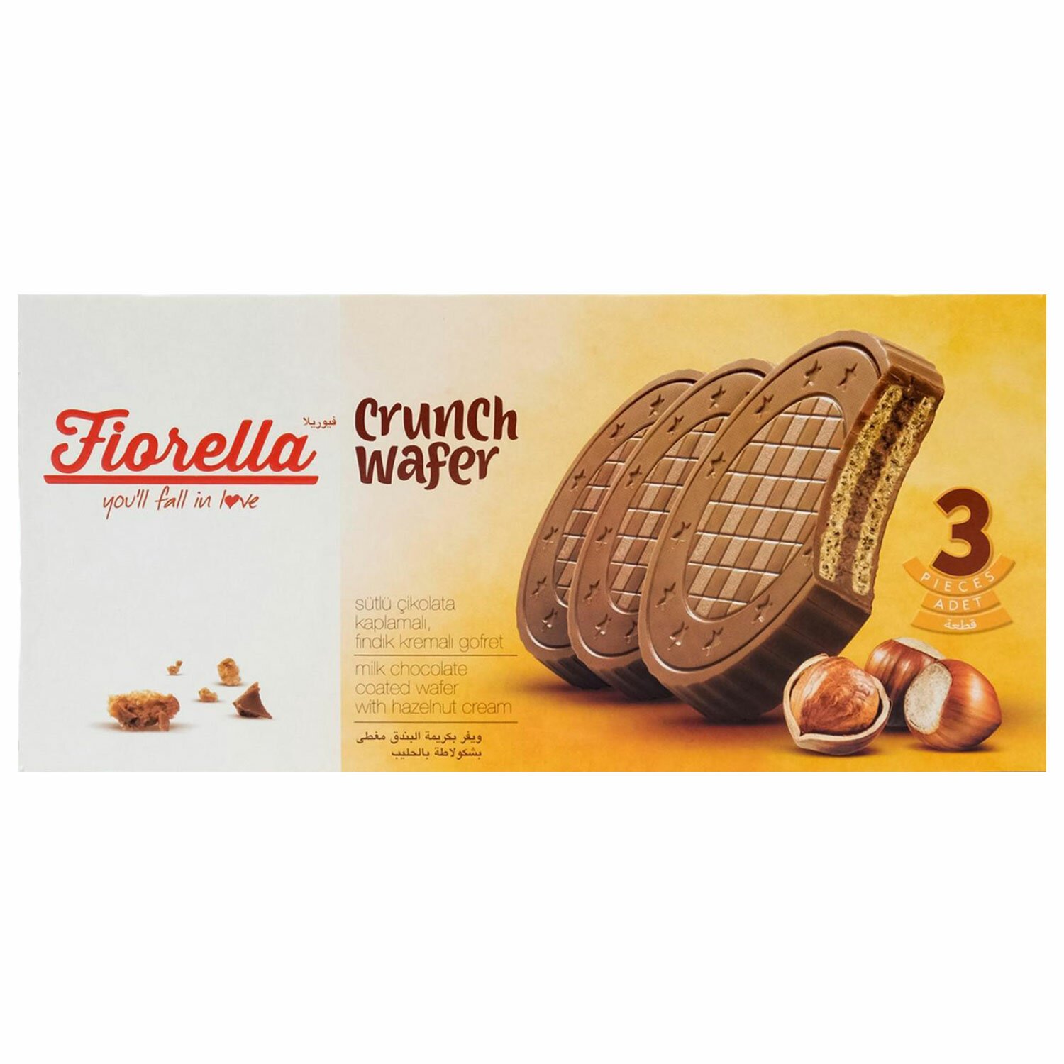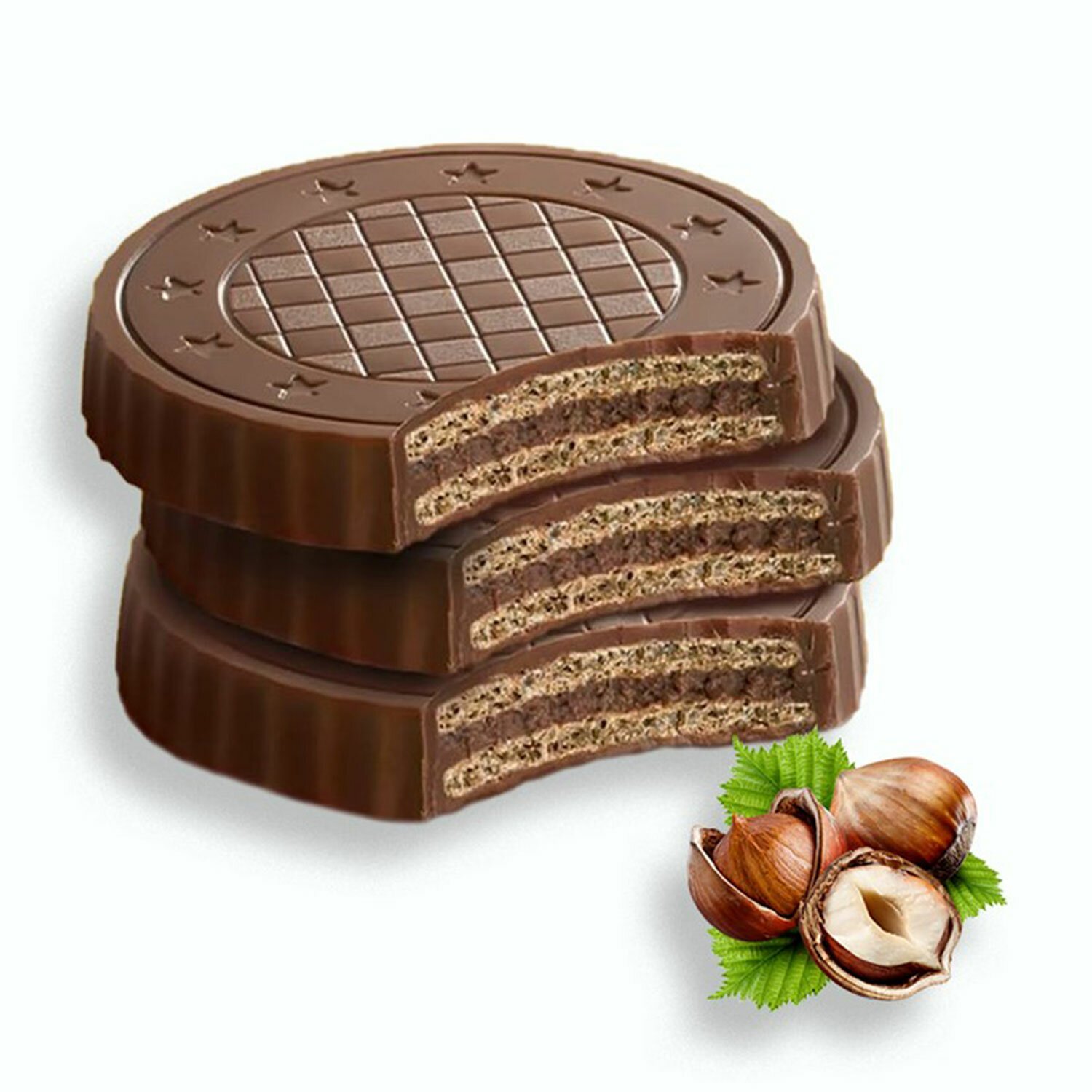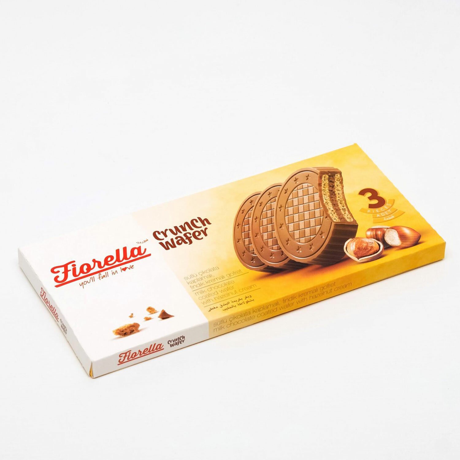 Вафли FIORELLA в молочном шоколаде с ореховой начинкой! Каждый кусочек предлагает несравненное сочетание молочного шоколада, хрустящей вафли и нежного орехового крема.
