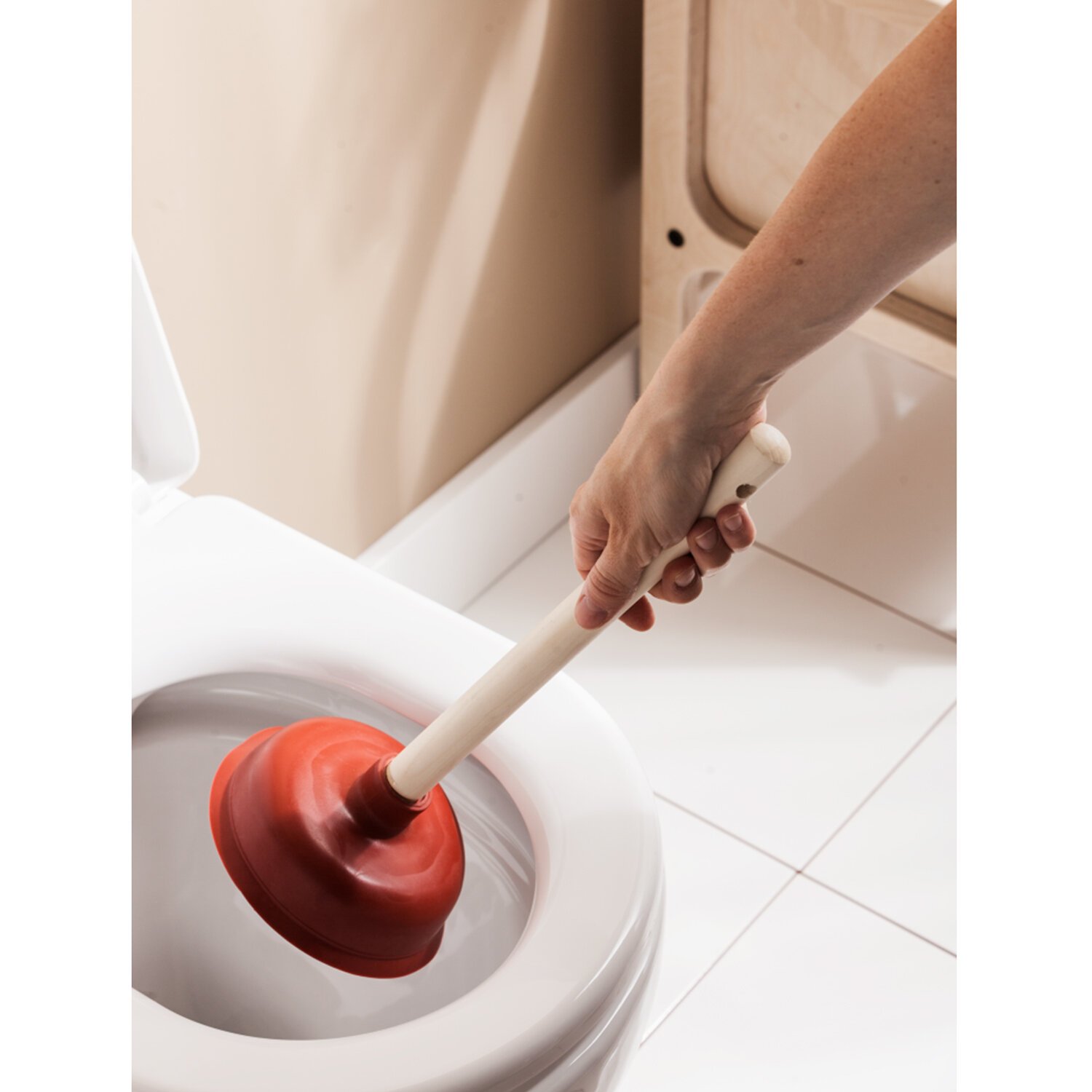 Прочный санитарный вантуз с широким резиновым наконечником. Позволяет очистить раковину и санитарные устройства от засоров.