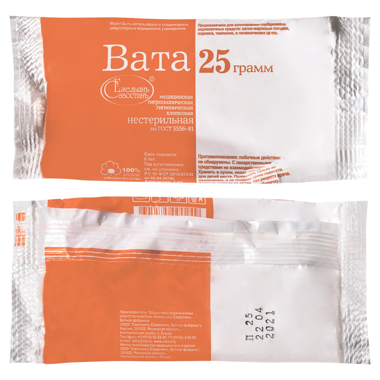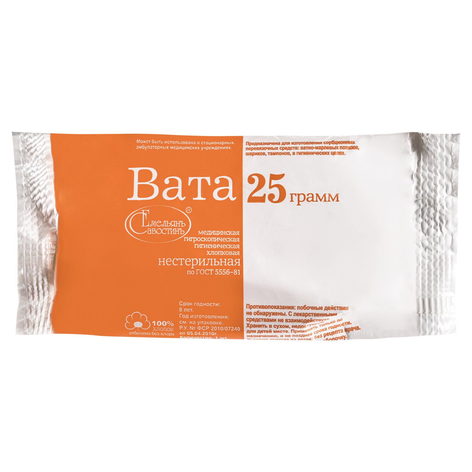 Вата гигиеническая нестерильная ЕМЕЛЬЯНЪ САВОСТИНЪ 25 г