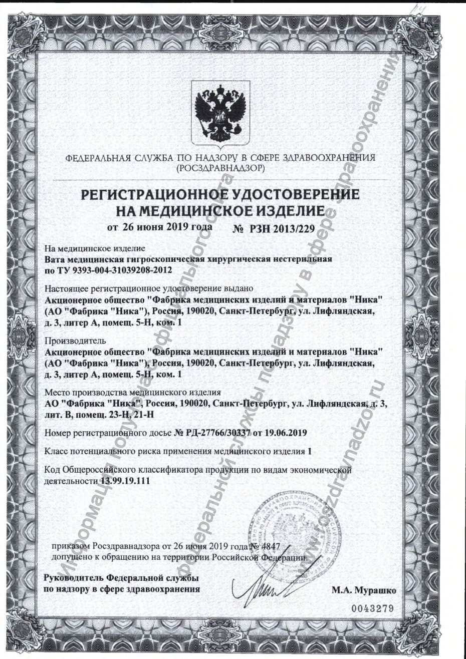 Вата хирургическая стерильная НИКА 250 гр