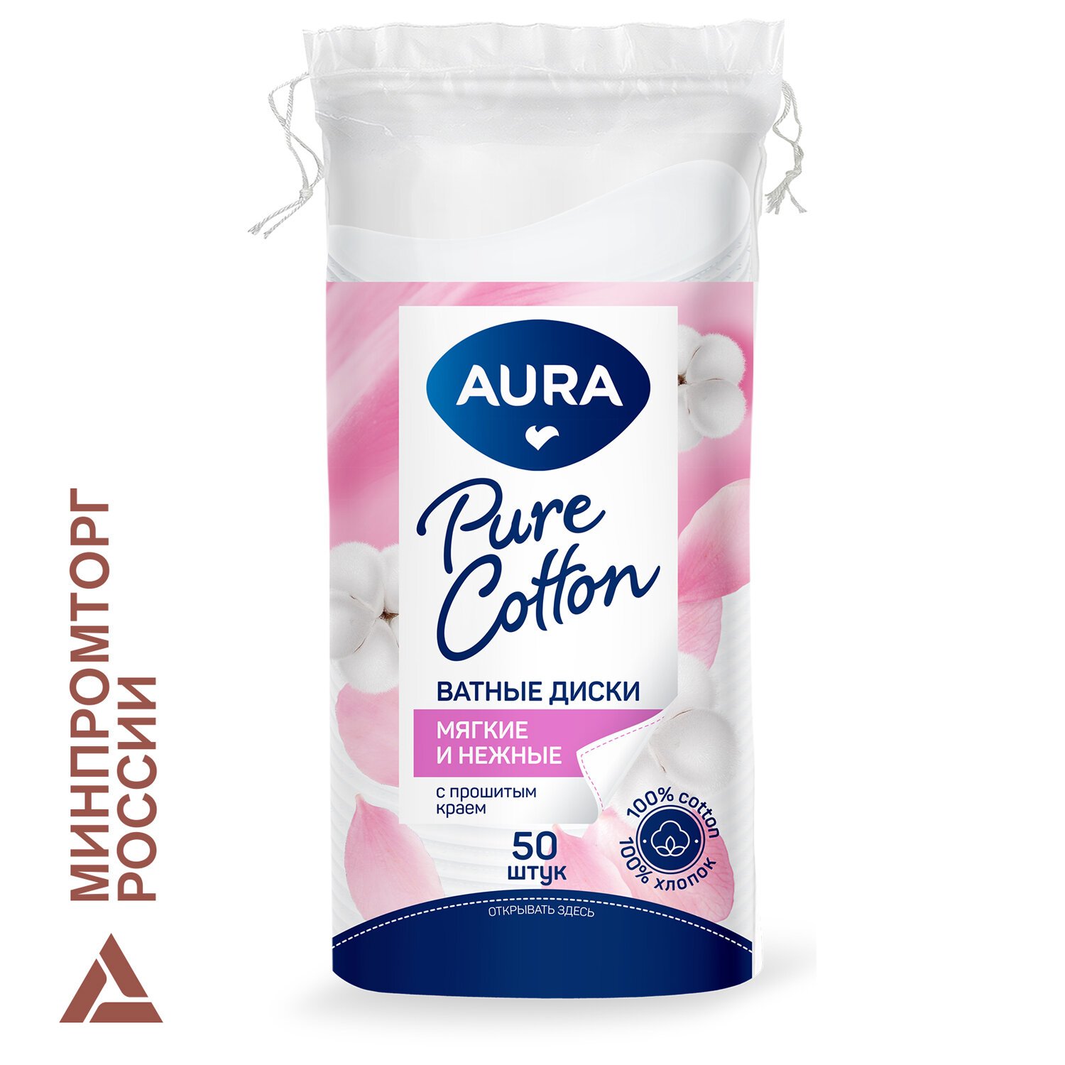 Ватные диски КОМПЛЕКТ 50 шт., AURA, двусторонние, ш/к 20728, 13113