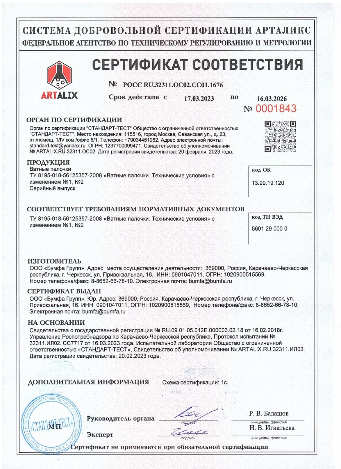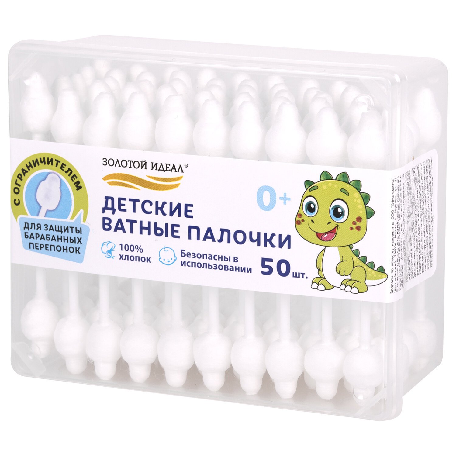 Ватные палочки детские 50 шт., с ограничителем, ЗОЛОТОЙ ИДЕАЛ, 100% хлопок, 116532