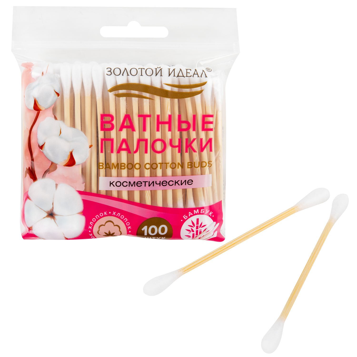 Ватные палочки КОМПЛЕКТ 100 шт., бамбуковый стик, 100% хлопок, зип-лок, ЗОЛОТОЙ ИДЕАЛ, 116556