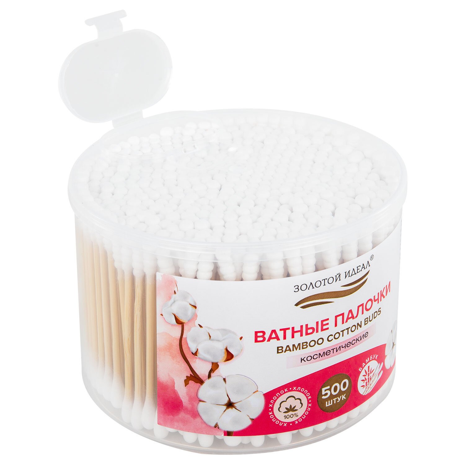 Ватные палочки КОМПЛЕКТ 500 шт.,бамбуковый стик,100% хлопок,пластиковый стакан, ЗОЛОТОЙ ИДЕАЛ, 116558