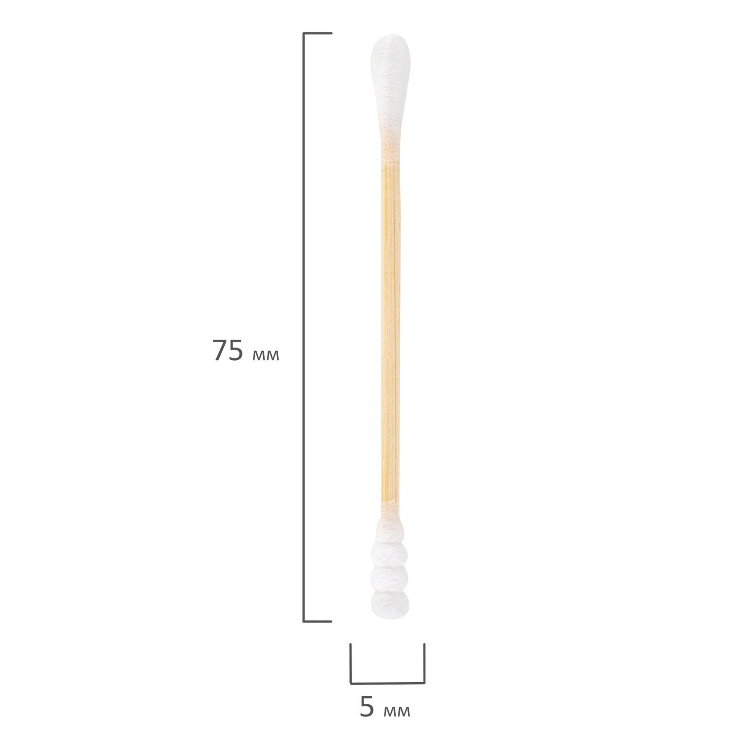 Плотный аппликатор надежно закреплен на концах изделия и прекрасно держит форму при намокании. Не оставляет ворсинок и не расслаивается, что делает использование ватных палочек удобным и безопасным. Плотность ватной намотки 6 г на погонный метр.