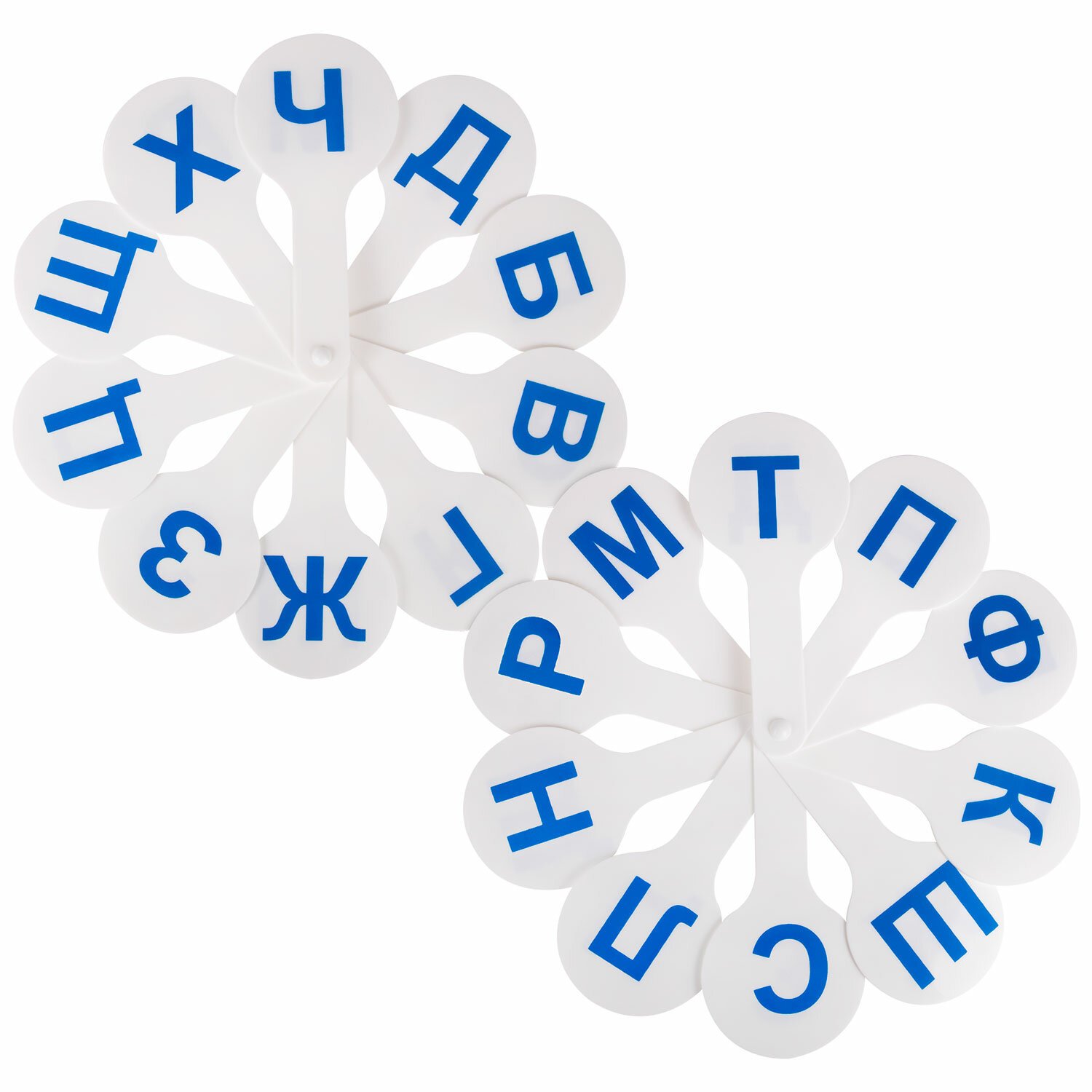 Набор содержит 1 веер с согласными буквами русского алфавита. Символы нанесены с двух сторон. Крупный размер и шрифт, качественная печать, устойчив к истиранию. Изготовлен из сертифицированного полипропилена. Размер в индивидуальной упаковке- 190х80х15 мм. Поставляется в пакете с европодвесом.