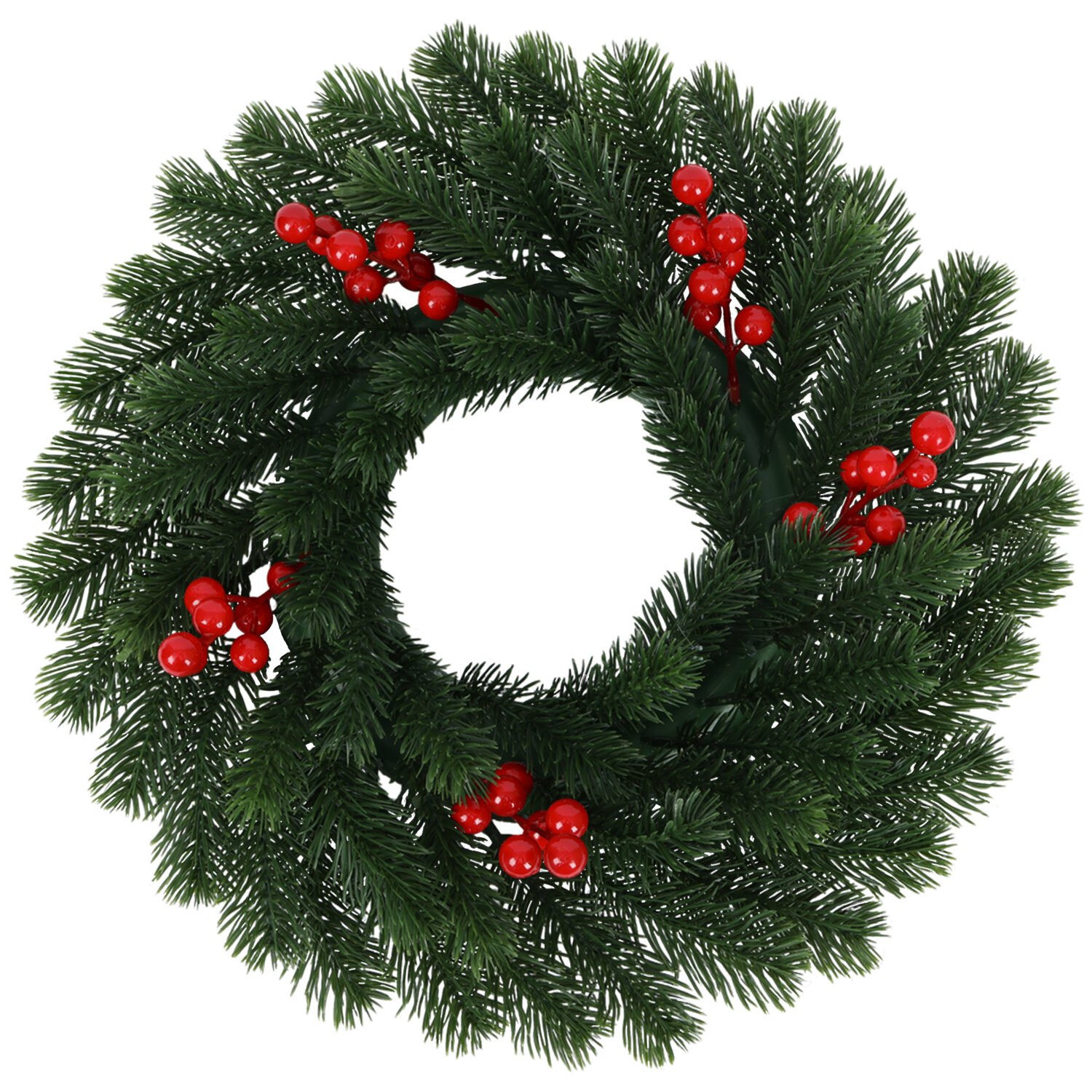 Материал – 100% литой ПЭТ. Цвет хвои – зелёный. Венок из литой ели, украшенный ветками красный ягодок, выглядит как натуральный и создает особую праздничную атмосферу.