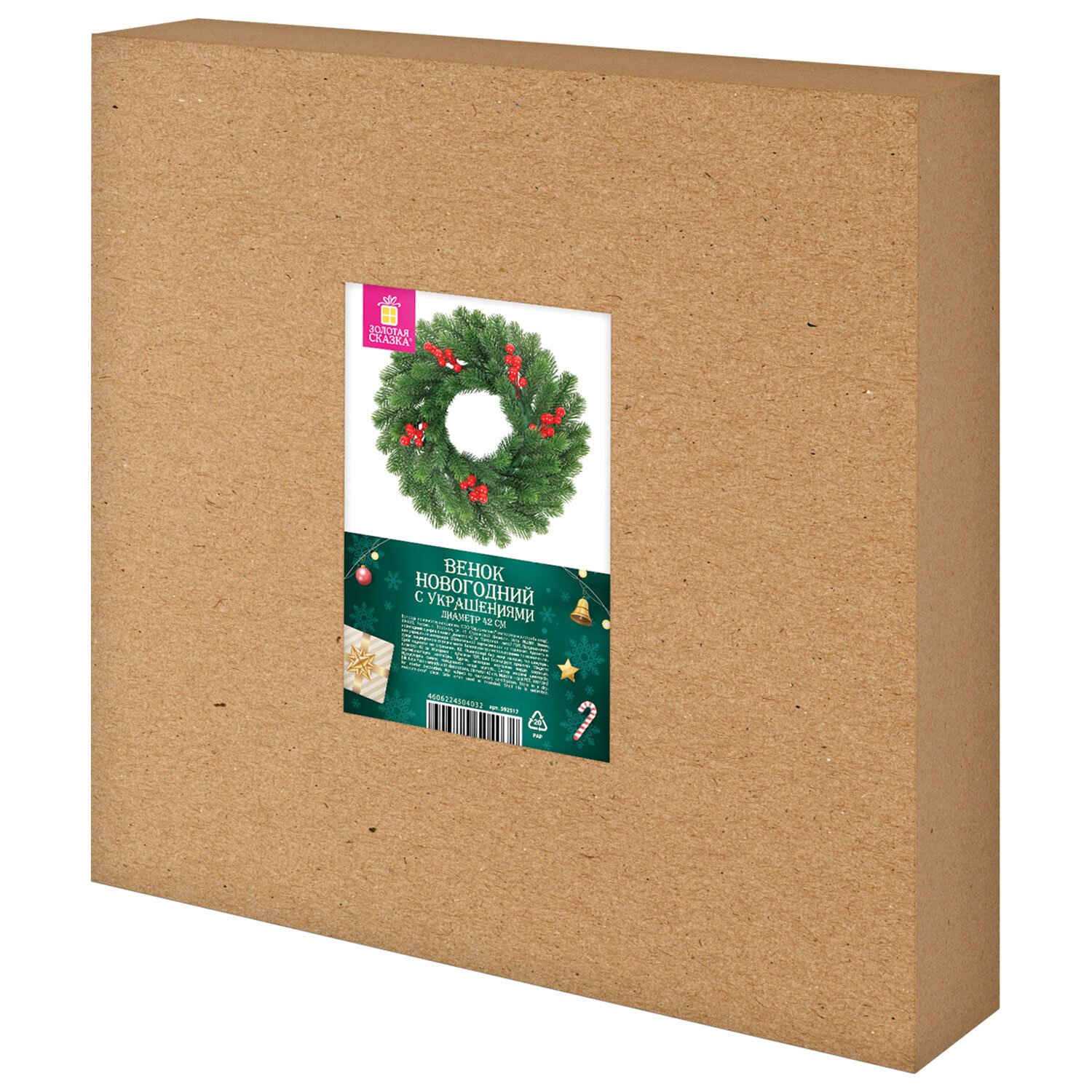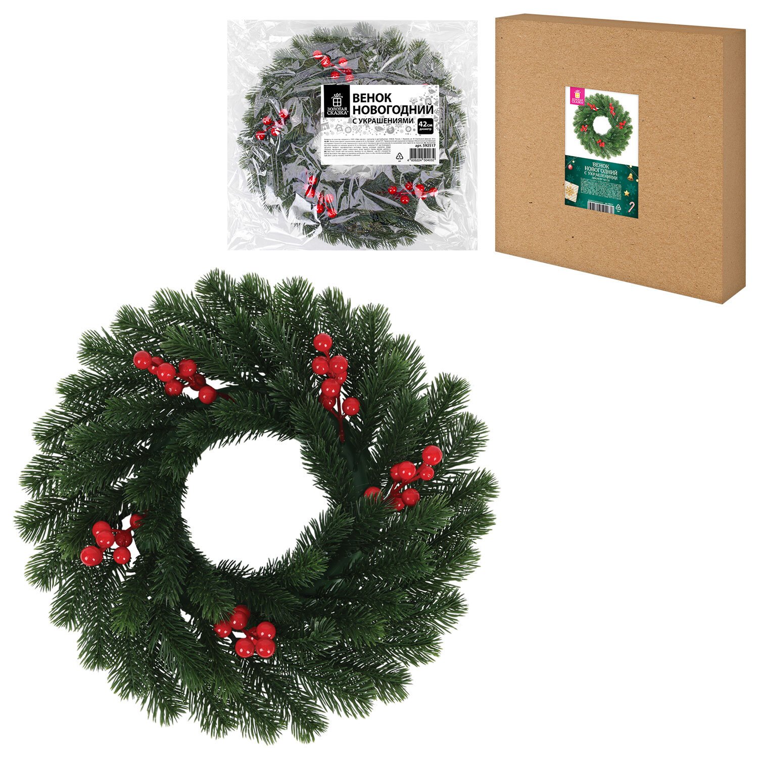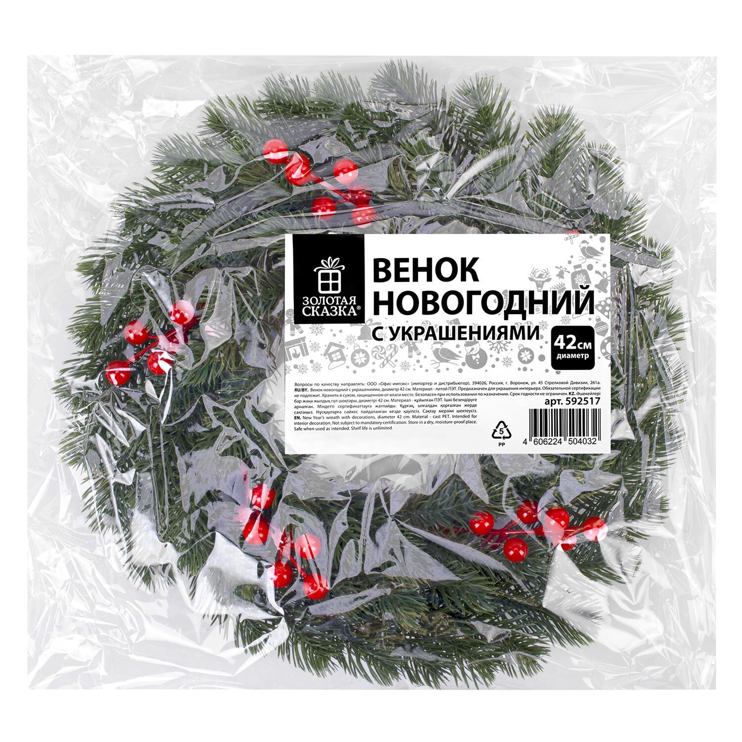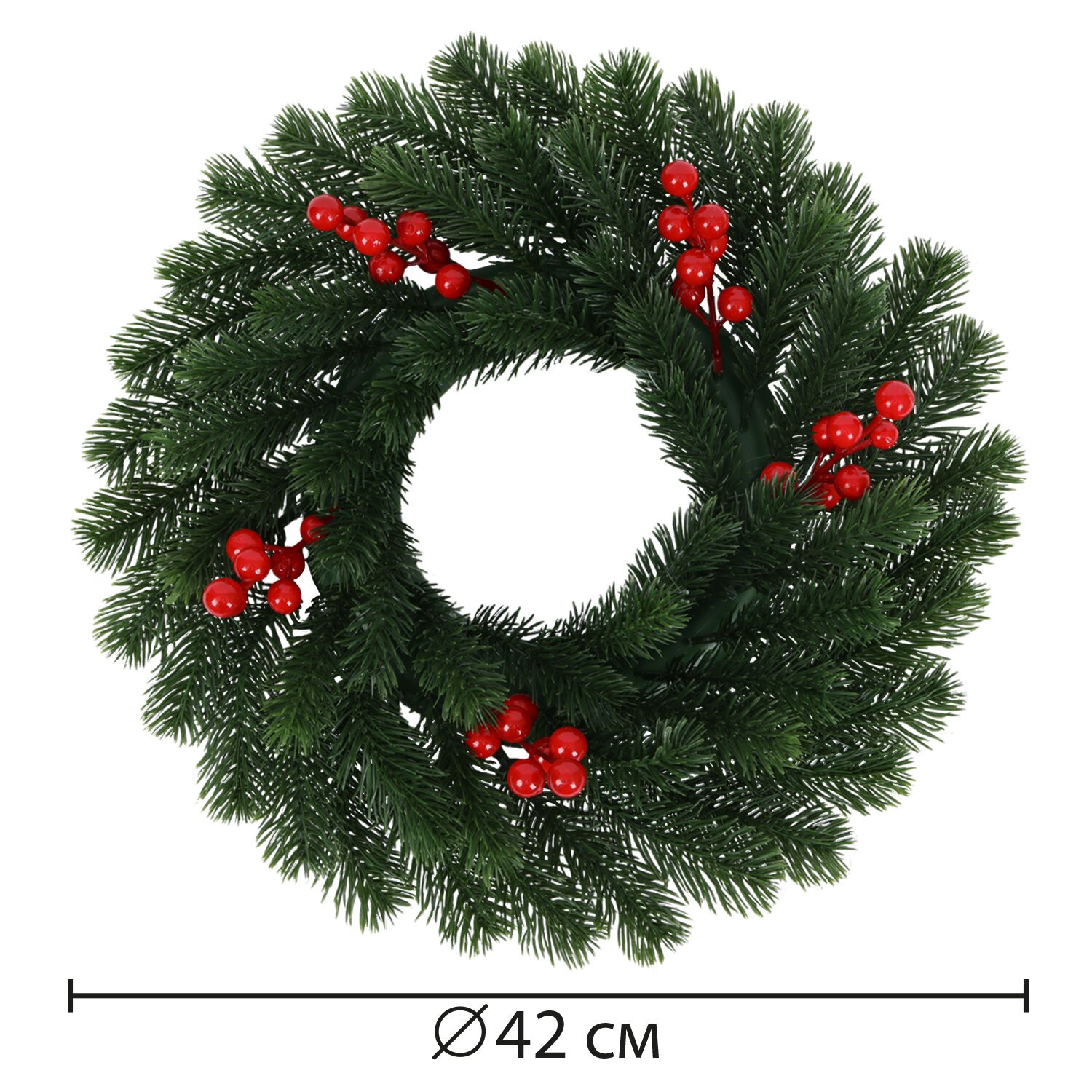 Венок новогодний, d42 см "Красные ягодки", с декором, литой ПЭТ, ЗОЛОТАЯ СКАЗКА, 592517