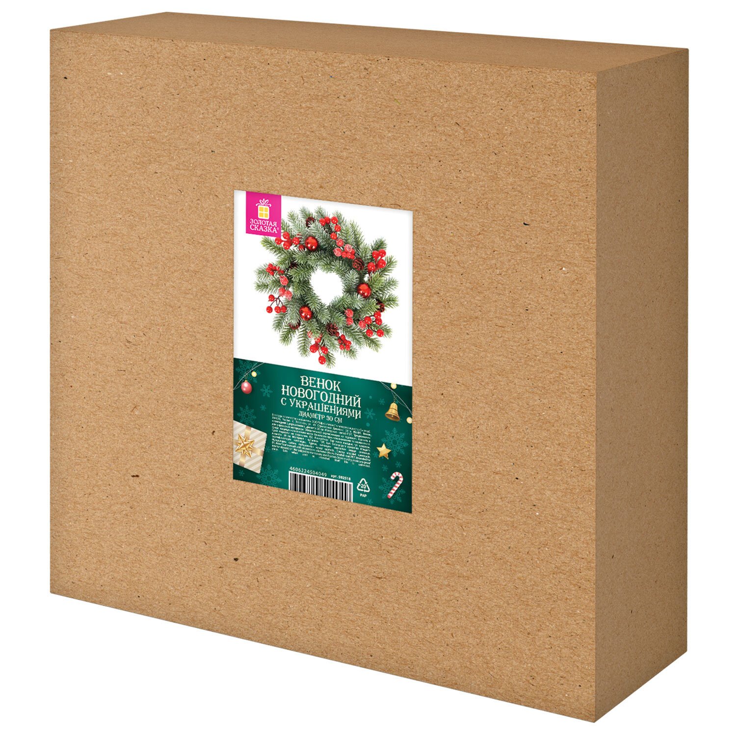 Венок новогодний заснеженный, d30см "Зимняя Сказка", с декором, литой ПЭТ, ЗОЛОТАЯ СКАЗКА, 592518