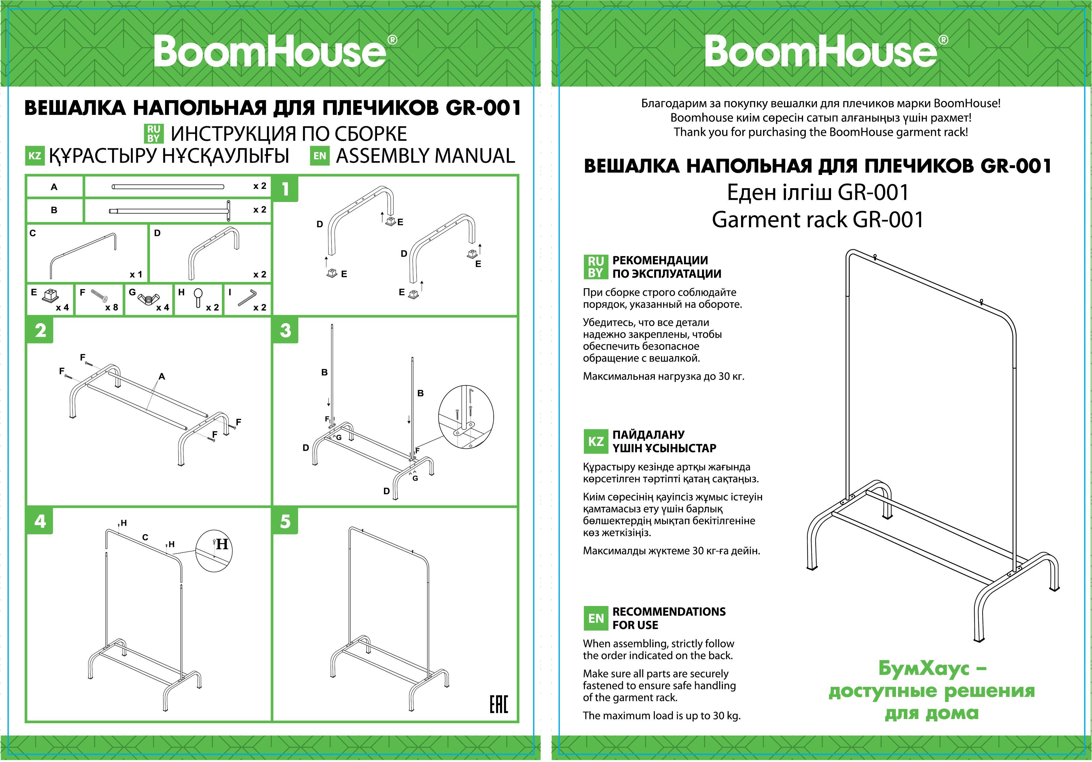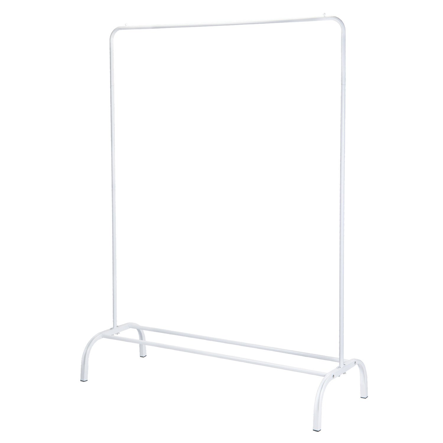 Железная перекладина вмещает до 18 плечиков, распределенная нагрузка — до 30 кг. Перекладина оснащена ограничителями, предотвращающими соскальзывание плечиков. Внизу полка для размещения обуви, коробок или органайзеров. На ножках предусмотрены заглушки, защищающие пол от повреждений. Мобильная благодаря минимальному весу. Изделие поставляется в разобранном виде в картонной коробке. Простая сборка согласно инструкции, шестигранный ключ в комплекте.