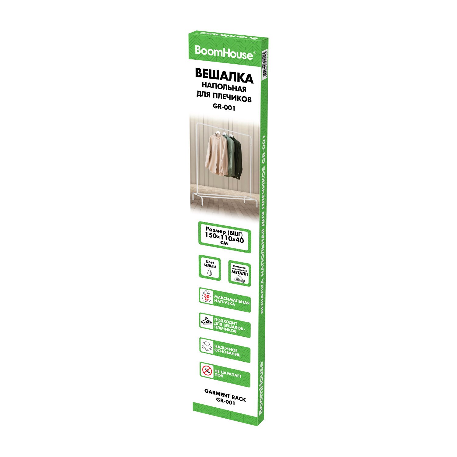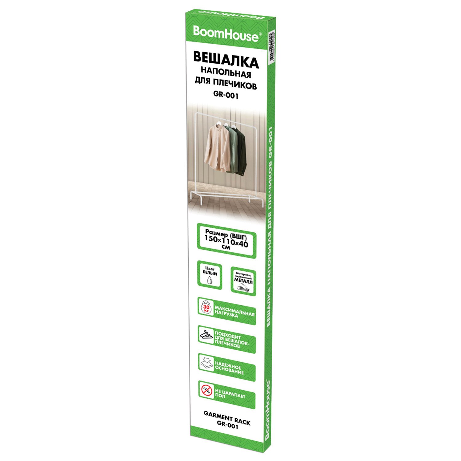 Вешалка для плечиков BOOMHOUSE GR-001 (в1500*ш1100*г400мм), металл, белая, 701435