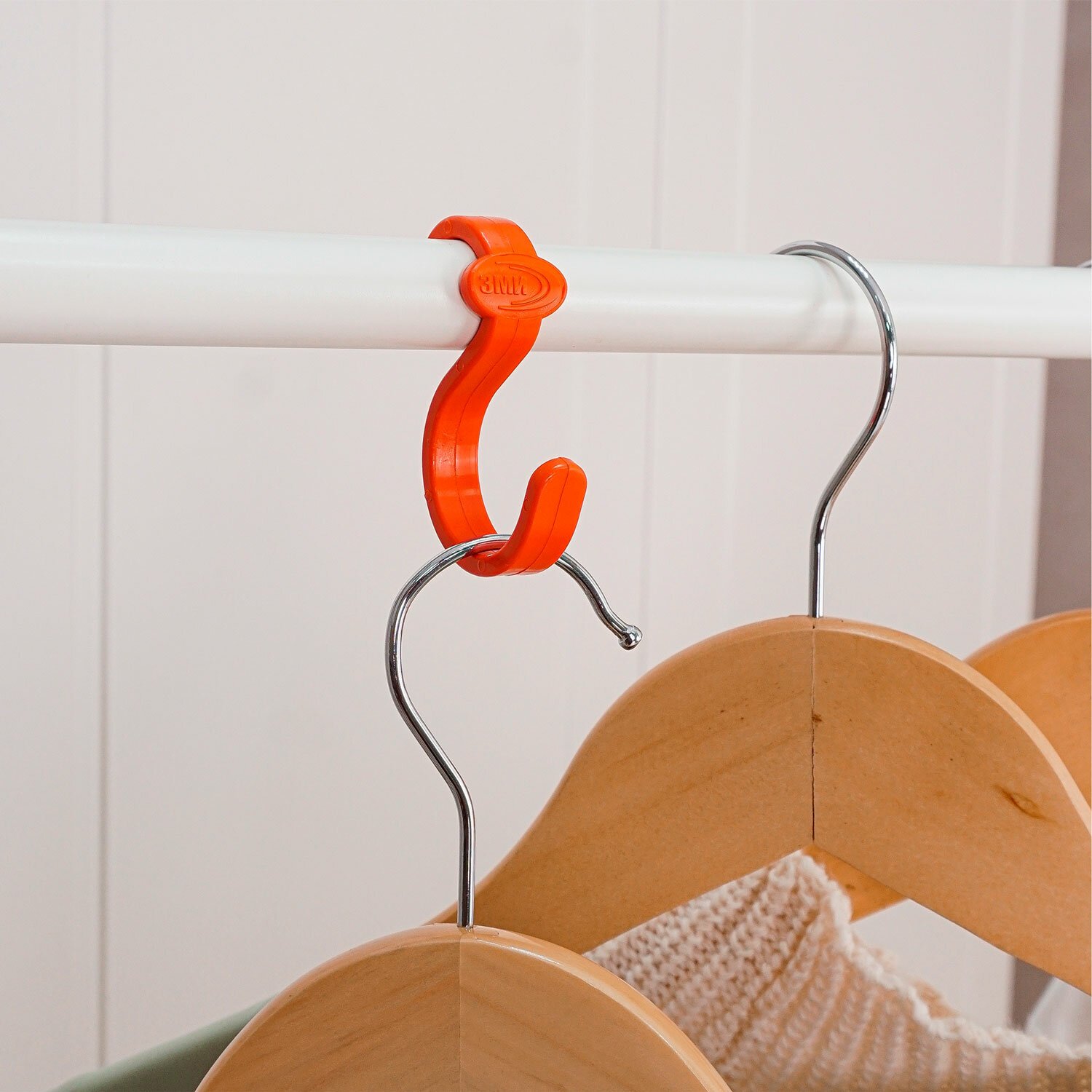 Перекладина оснащена ограничителями, предотвращающими соскальзывание плечиков.