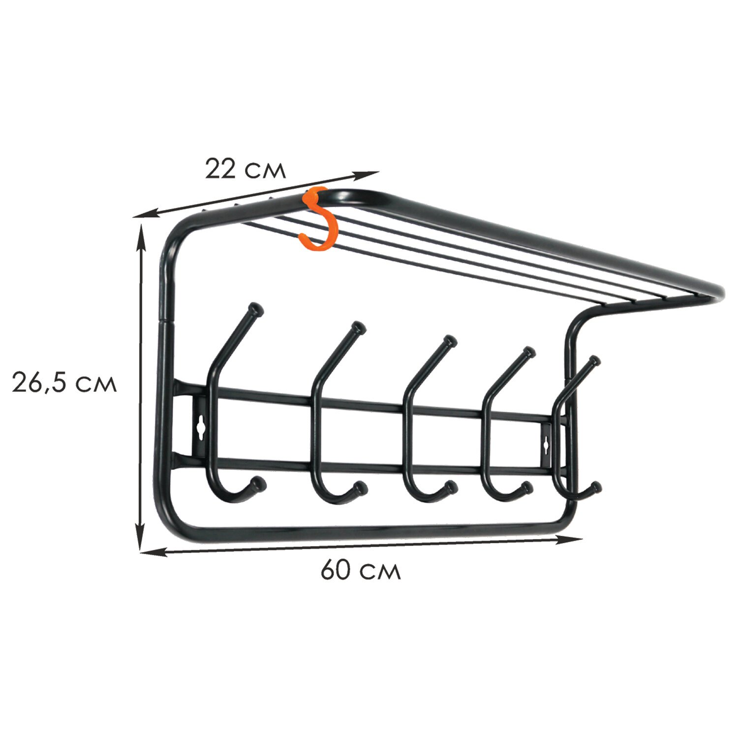 Вешалка настенная с полкой "ВСП6", 265х600х220 мм, 5 крючков, металл, черная, ВСП 6 Ч