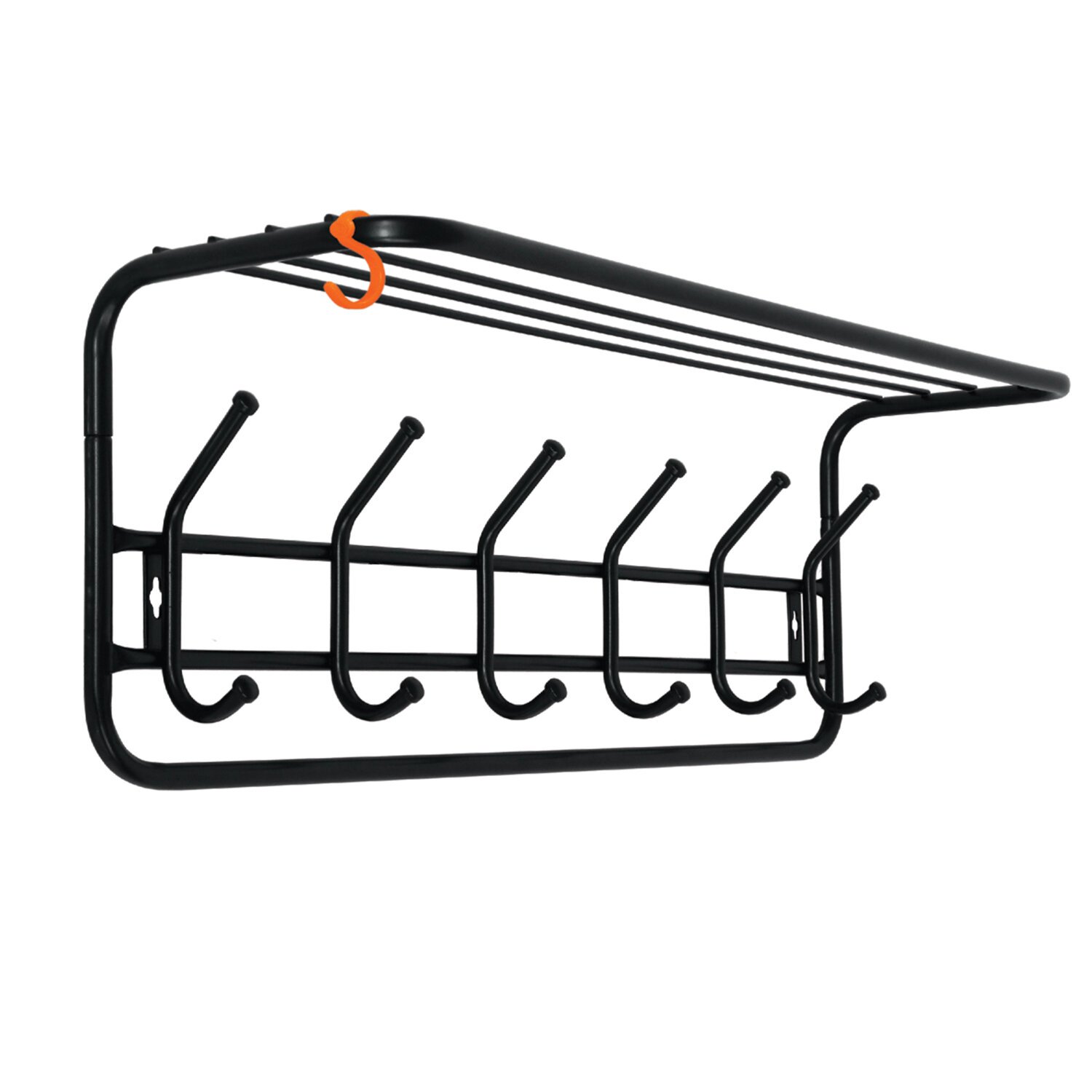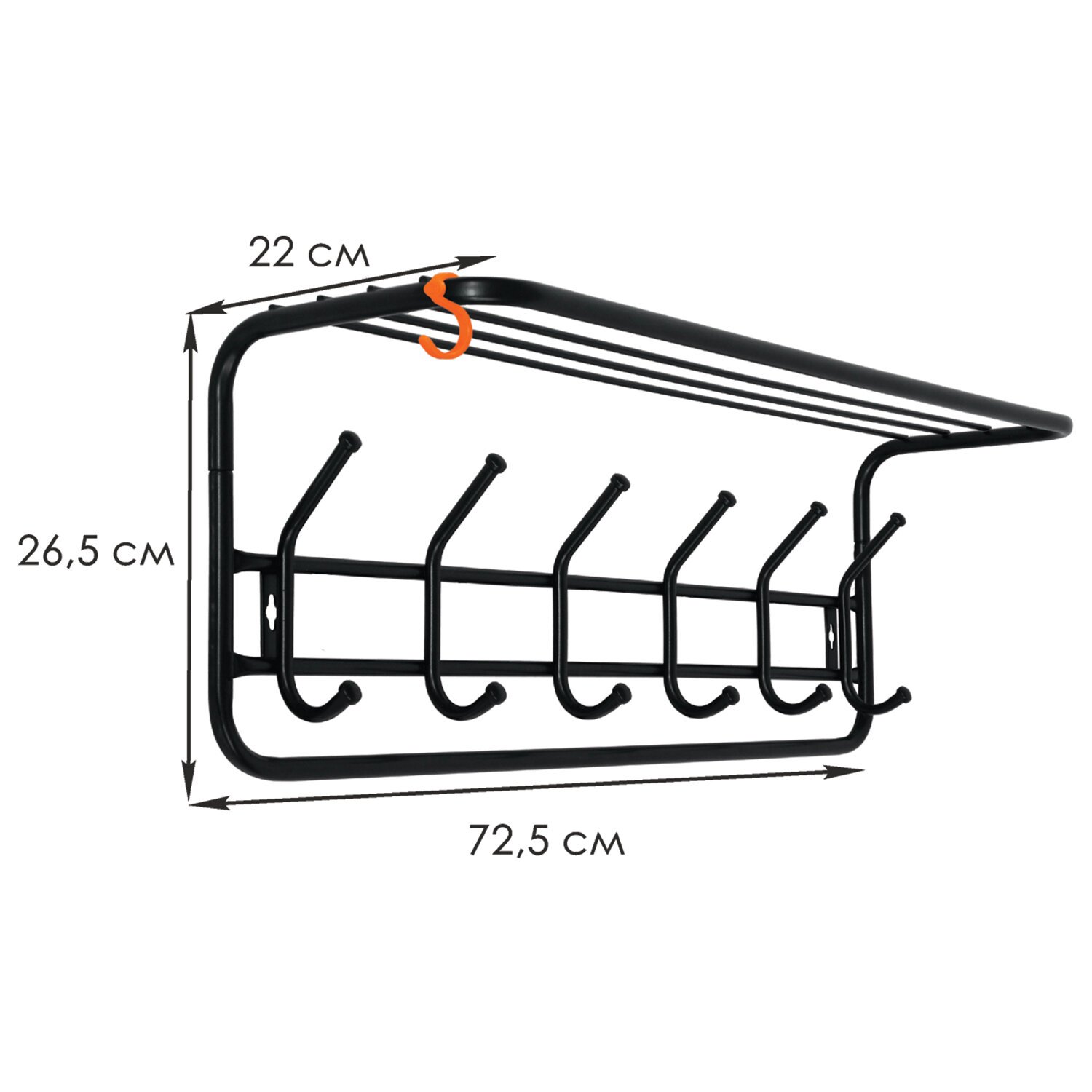 Вешалка настенная с полкой "ВСП7", 265х725х220 мм, 6 крючков, металл, черная, ВСП 7 Ч