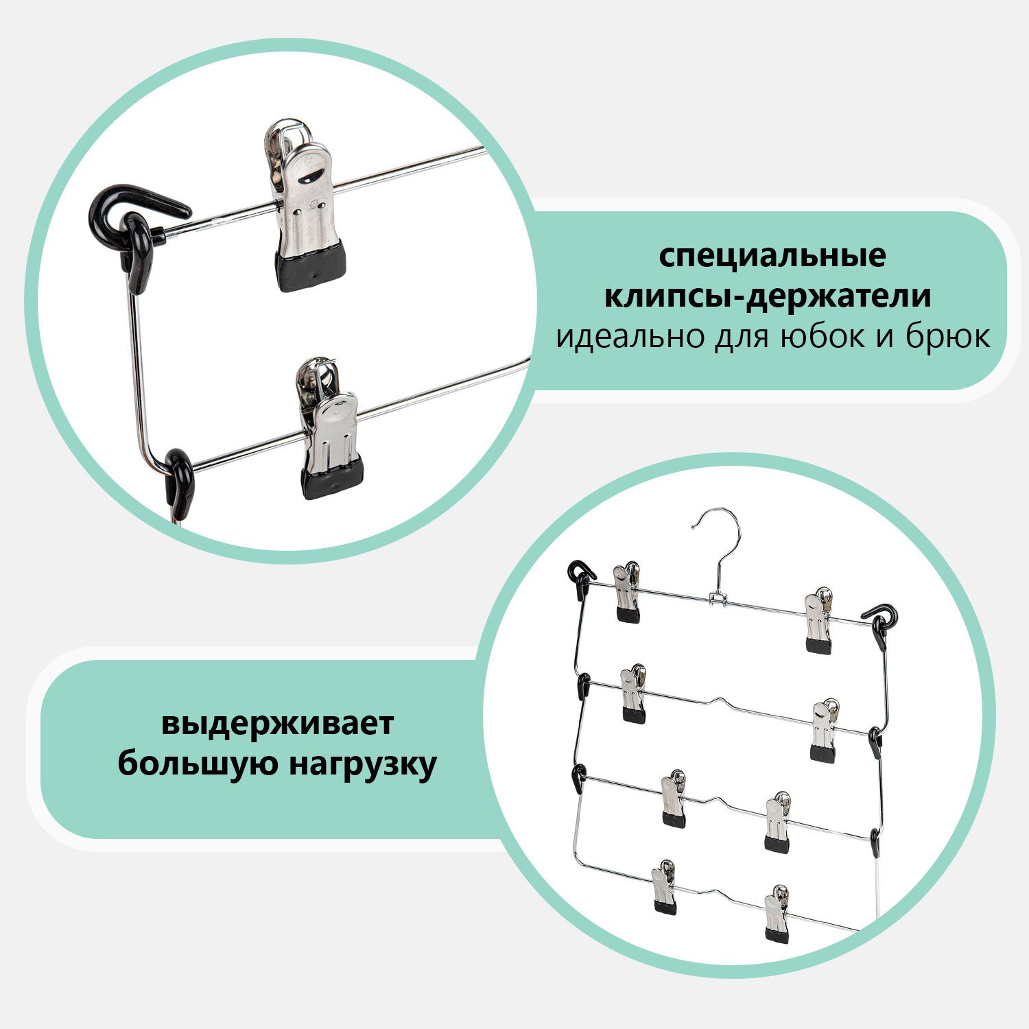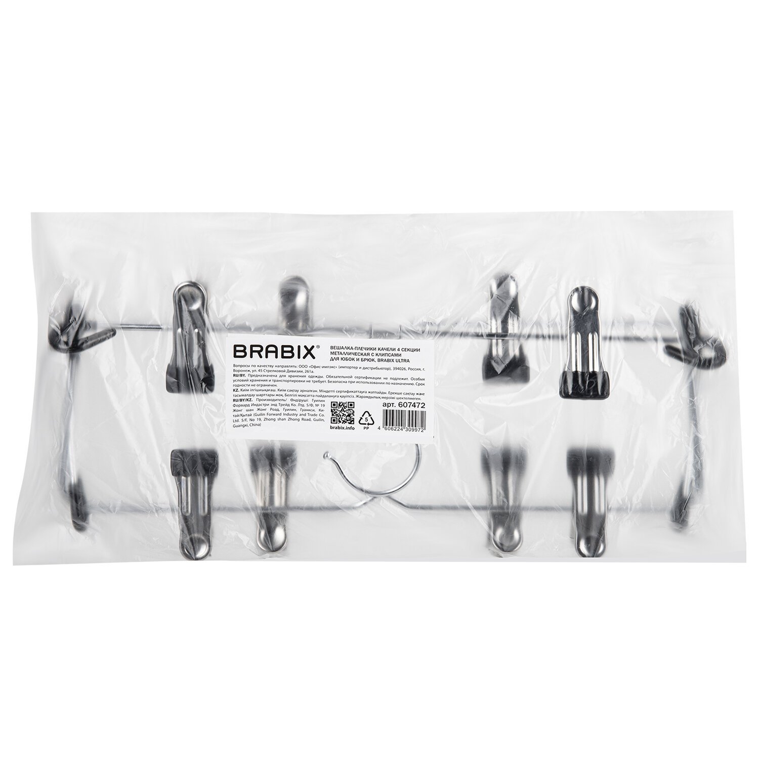 Вешалка-плечики качели, 4 секции, металлическая, с клипсами для юбок и брюк, BRABIX, 607472