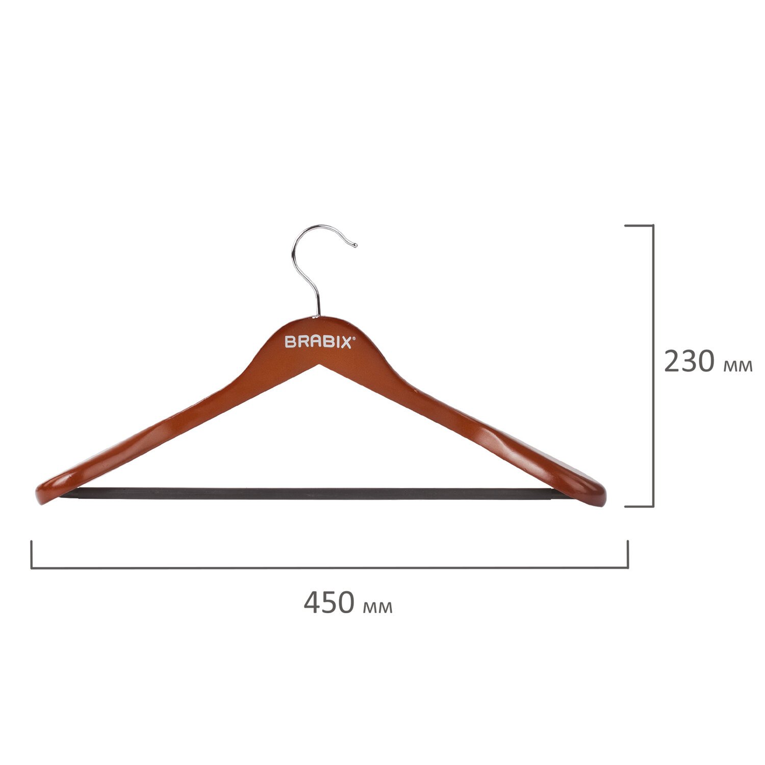 Вешалки-плечики, размер 48-50, КОМПЛЕКТ 5 шт., дерево, перекладина, цвет шоколад, BRABIX "Стандарт", 601162