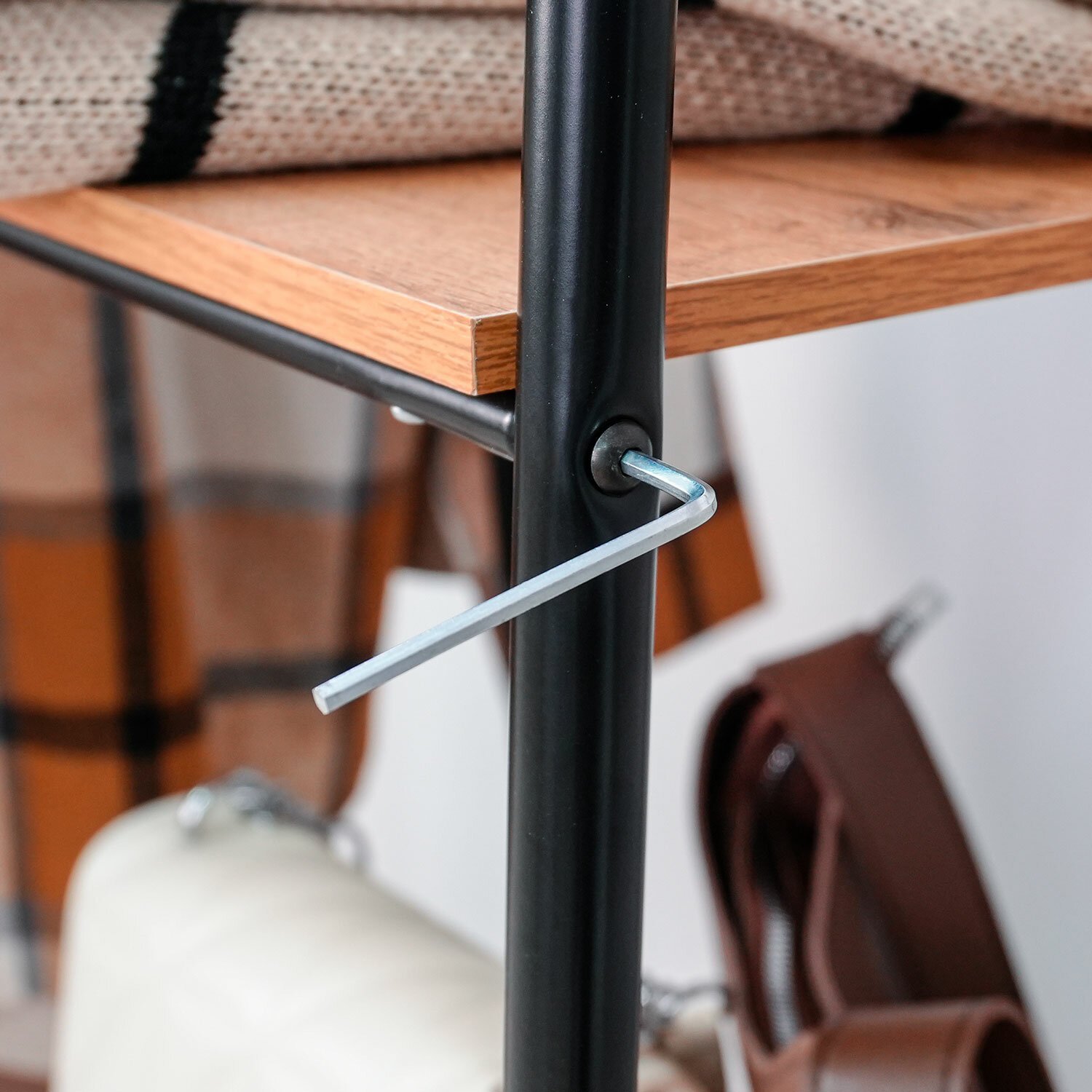 Железная перекладина способна разместить до 10 плечиков, распределенная нагрузка – до 20 кг.