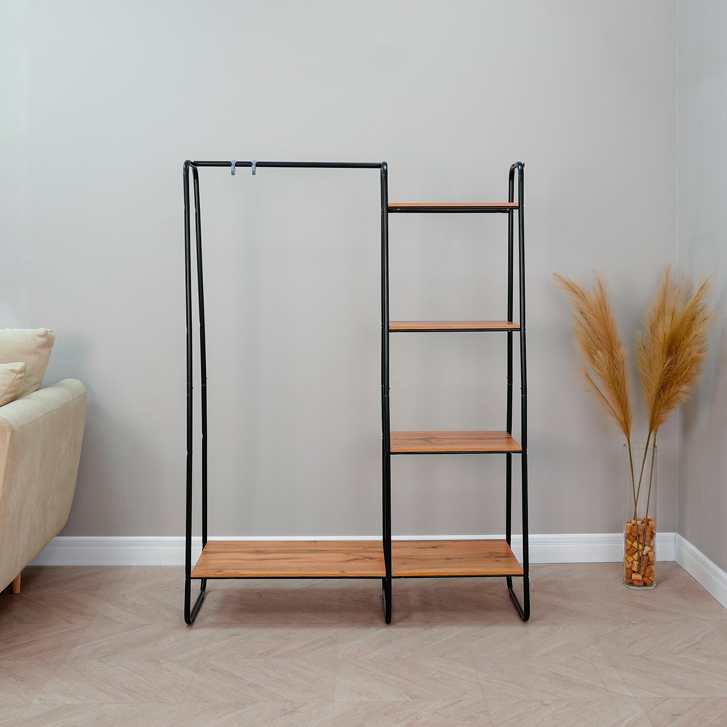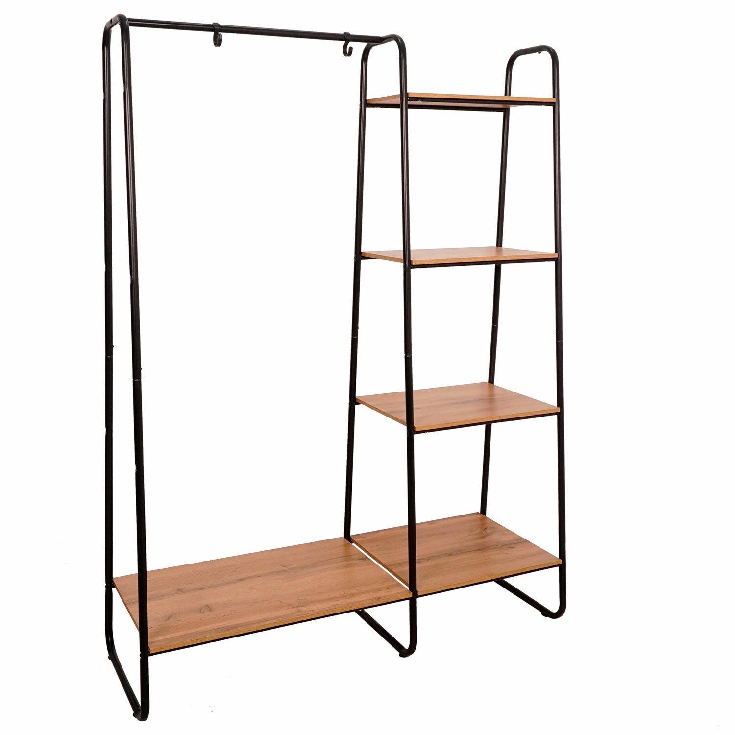 Вешалка-стеллаж "Скандинавия-1", 1470х1100х385 мм, 5 полок, металл/ЛДСП, черная/дуб, ГСС1 Ч