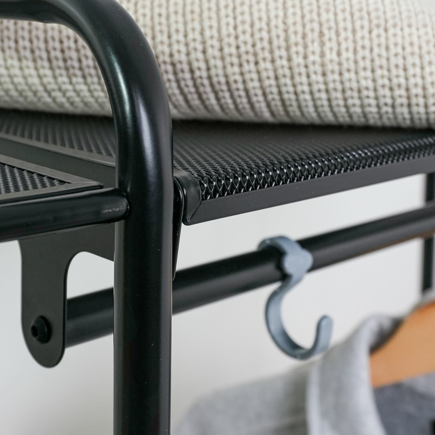Железная перекладина способна разместить от 10 до 15 плечиков, распределенная нагрузка — до 20 кг.