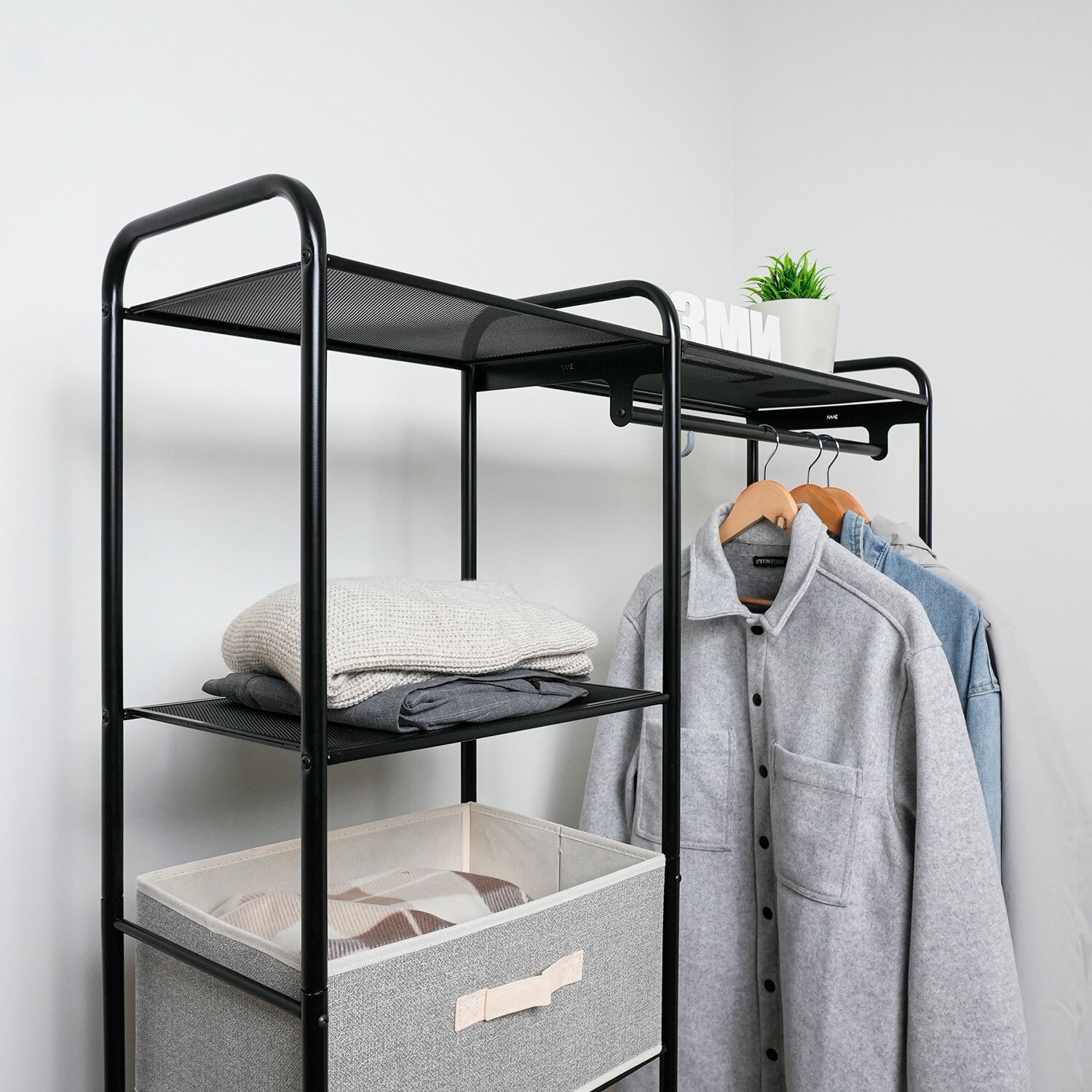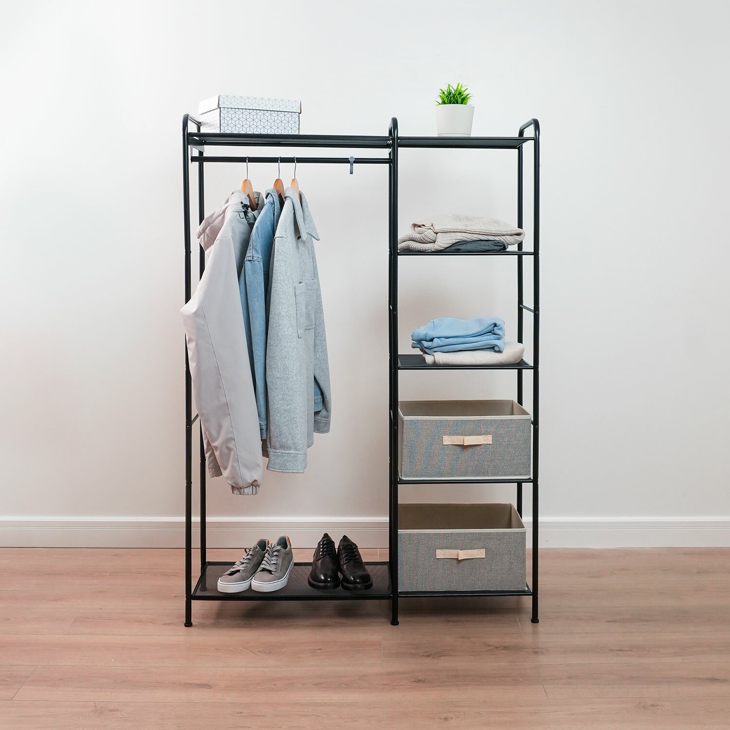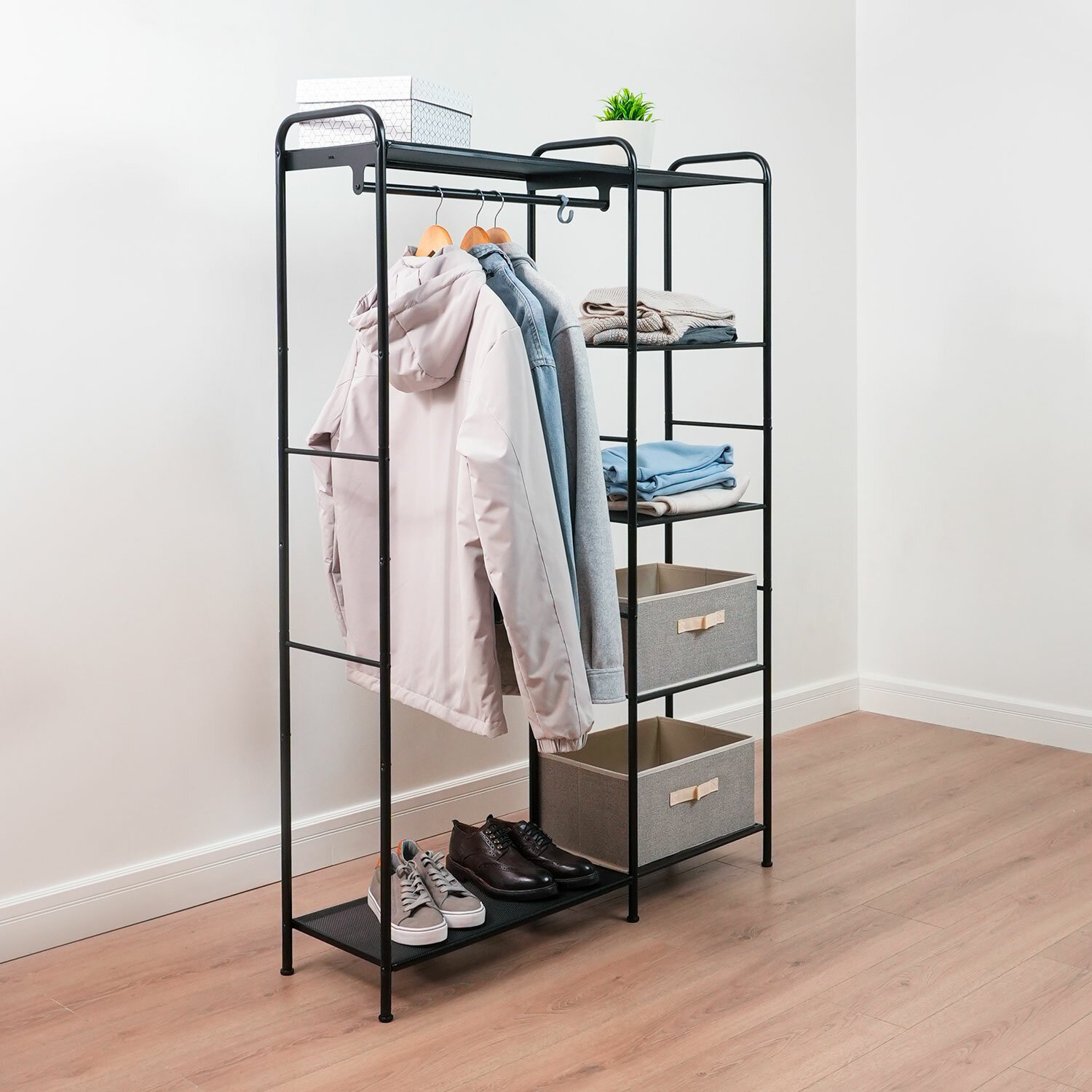 Вешалка-стеллаж "Валенсия-1", 1555х1090х300 мм, 7 полок, металл, черная, ГСВ1 Ч