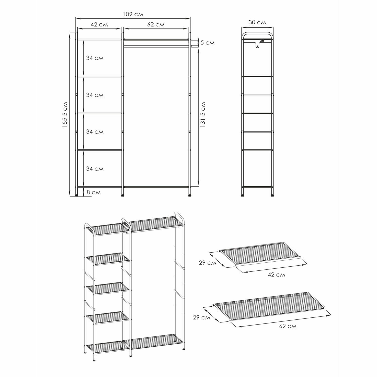 | Максимальное количество вмещаемых вешалок-плечиков | 15 |