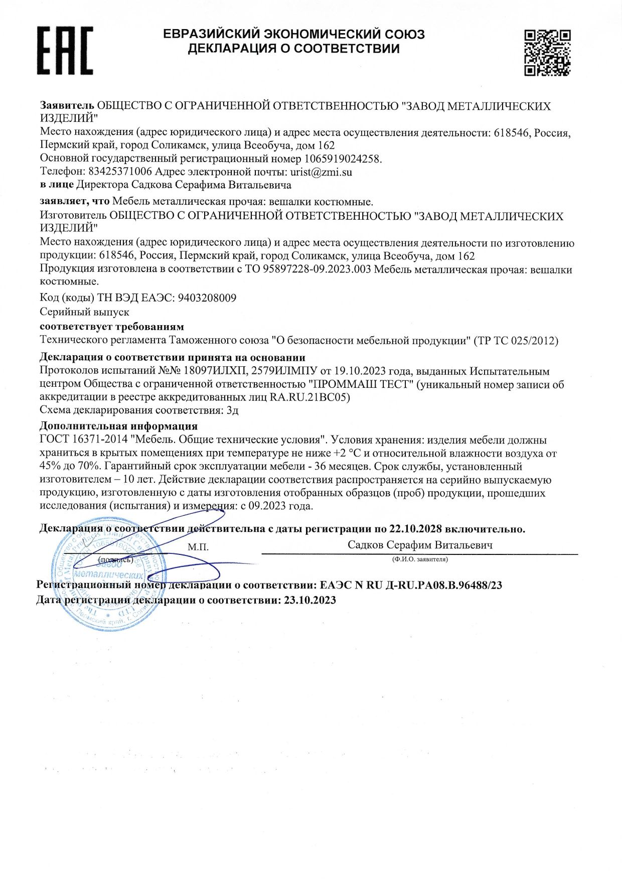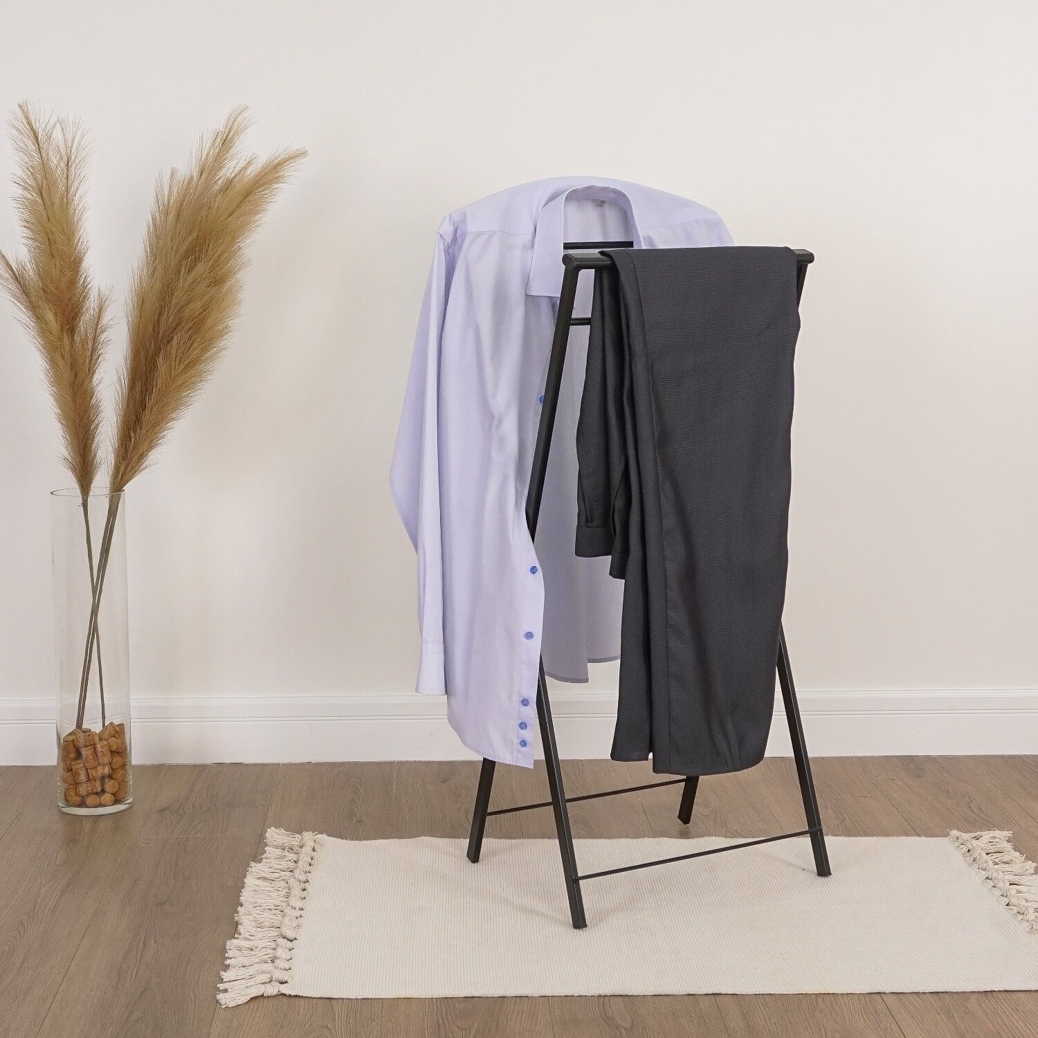 Вешалка для одежды индивидуального пользования. Подходит для хранения одежды, ее сушки и отпаривания. Вместительная за счет плечиков и штанг. Компактность, функциональность и складная конструкция позволяют ее эксплуатацию дома, в офисе, гостиницах и кафе.